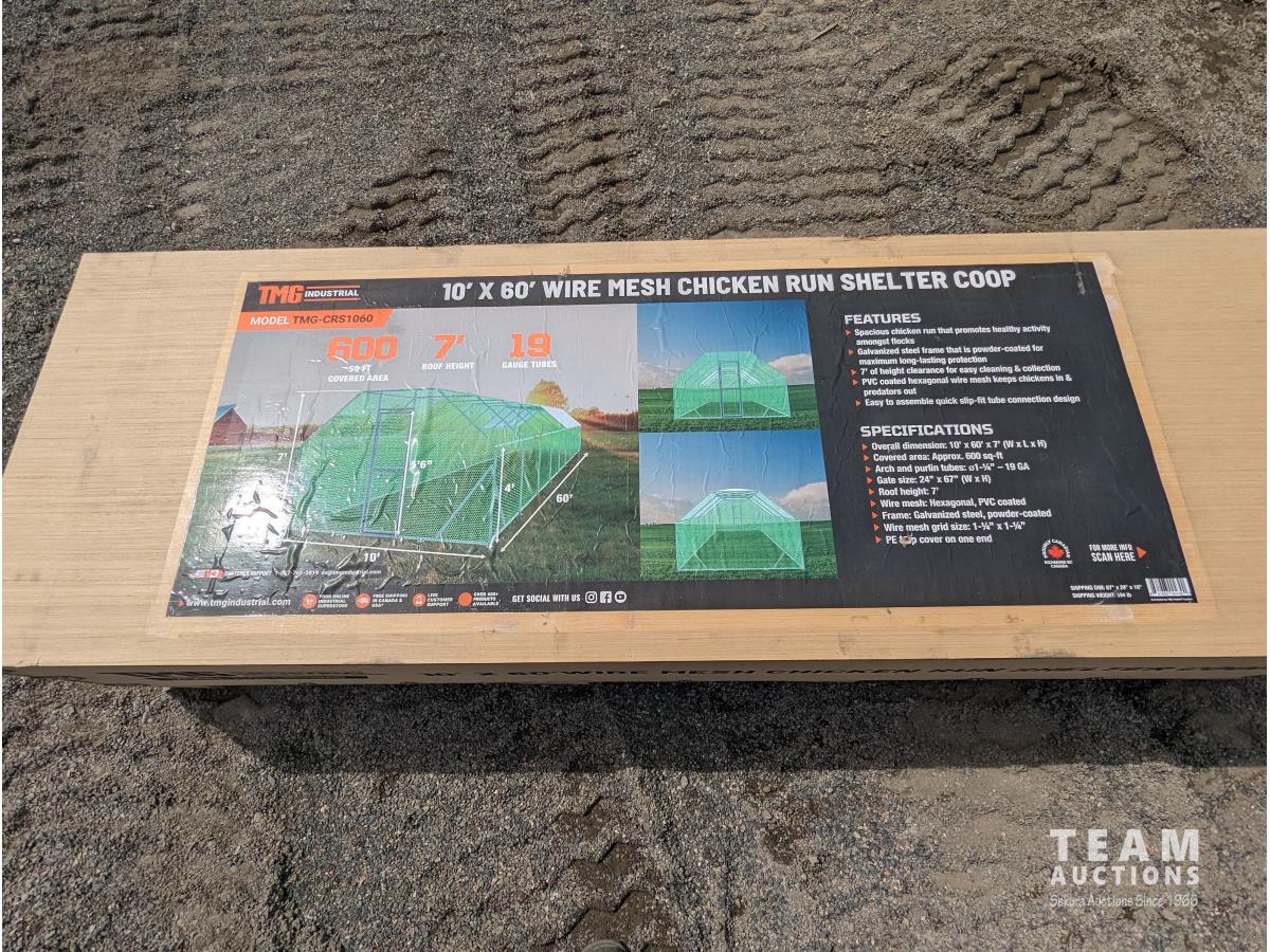 304 TMG Industrial CRS1060 10 Ft X 60 Ft Wire Mesh Chicken Coop Shelter (Unused)