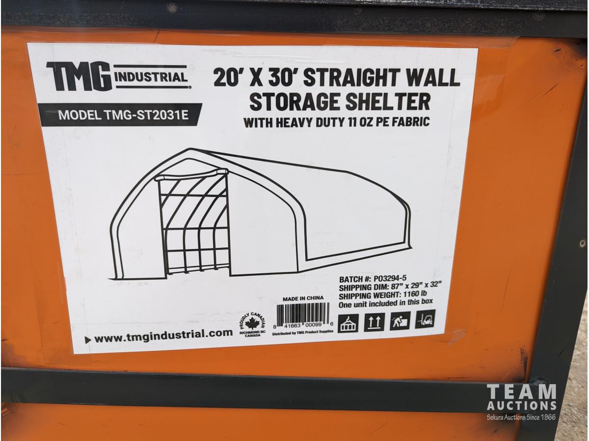 90 TMG Industrial ST2031E 20 Ft X 30 Ft Straight Wall Peak Ceiling Storage Shelter (Unused)