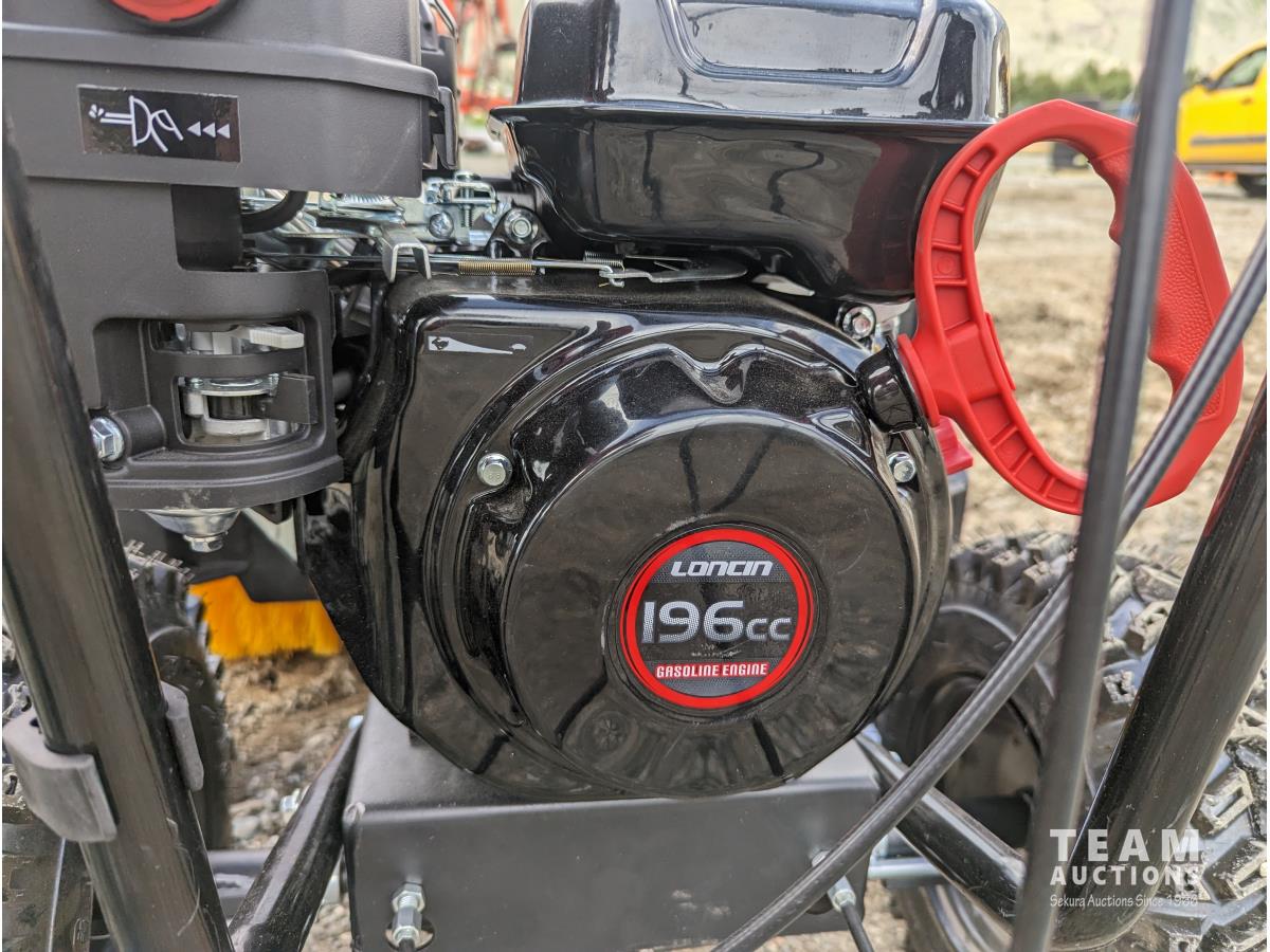 Brush can be angled left and right up to 20° to direct snow, lifan 196CC 6.5 HP gas, 14 inch broom diameter