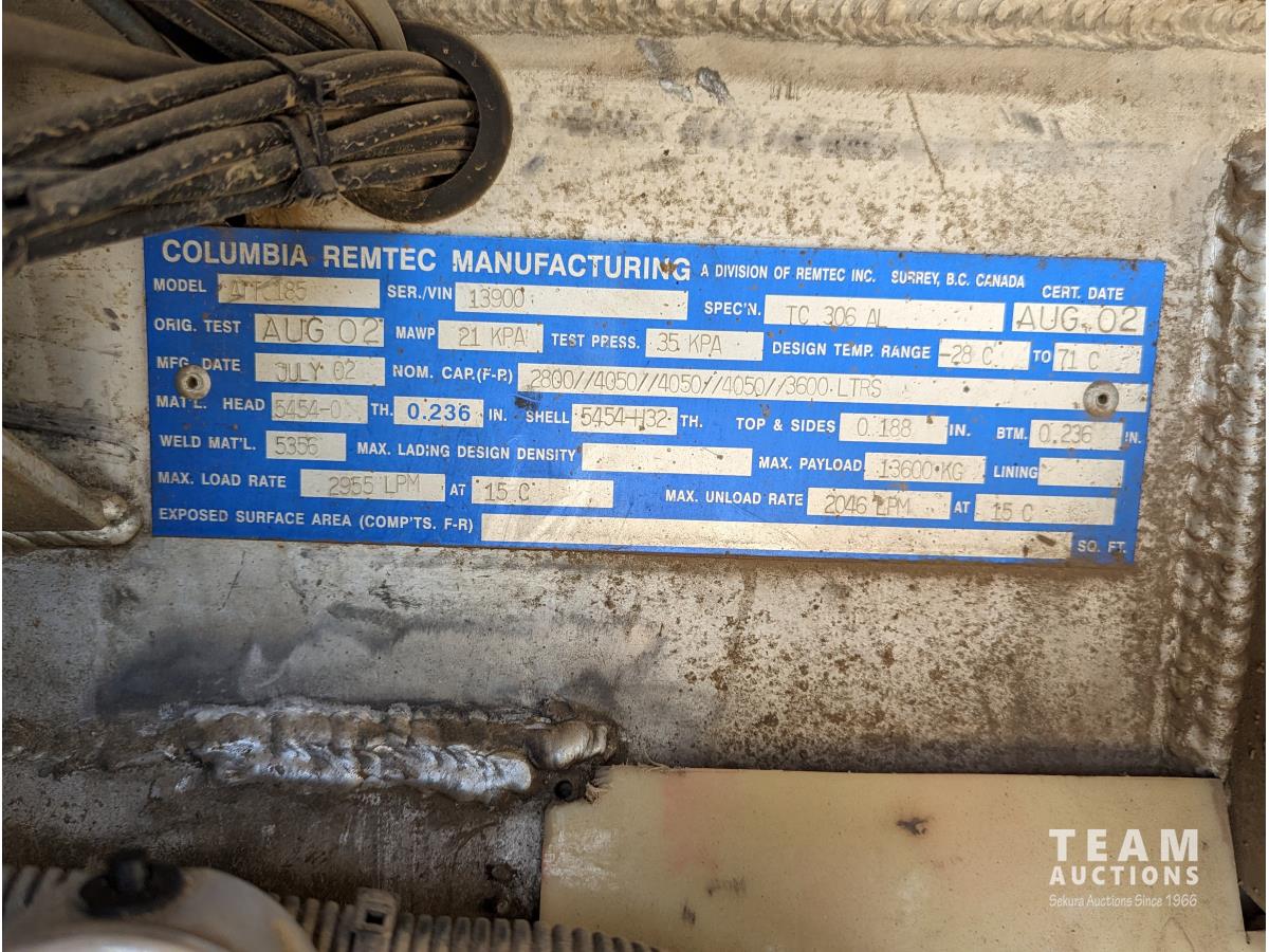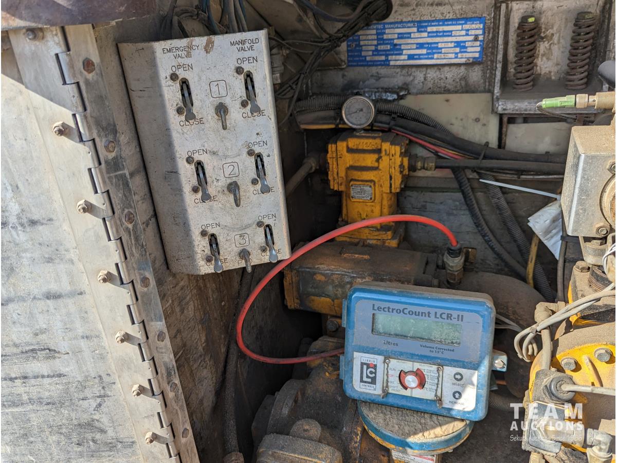 Detroit 14.8 L 6 cylinder diesel engine, DEF required, emissions deleted, Eaton 18 speed manual transmission, A/C, cruise control, air ride driver seat, aluminum tool boxes, 2002 Columbia Remtec rig up, chain holders, Columbia Remtec 18550 liter 5 compartment aluminum tank, tank certified 08/2002, spring suspension, 20,000 lb front axle, 46,000 lb rear axles, 3 way diff locks, all aluminum wheels, 425/65R22.5 front tires, 11R24.5 rear tires