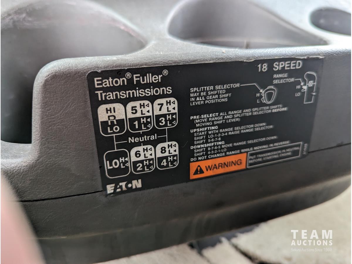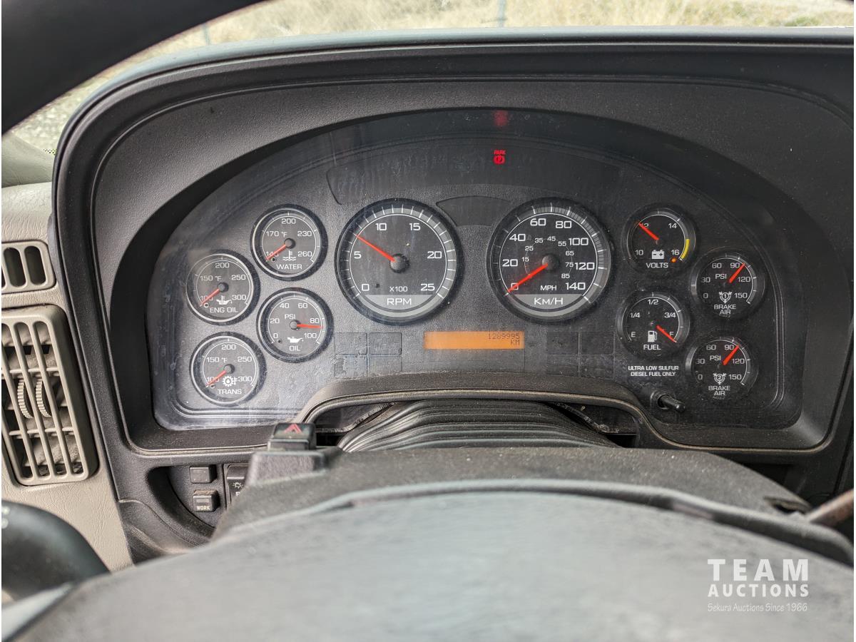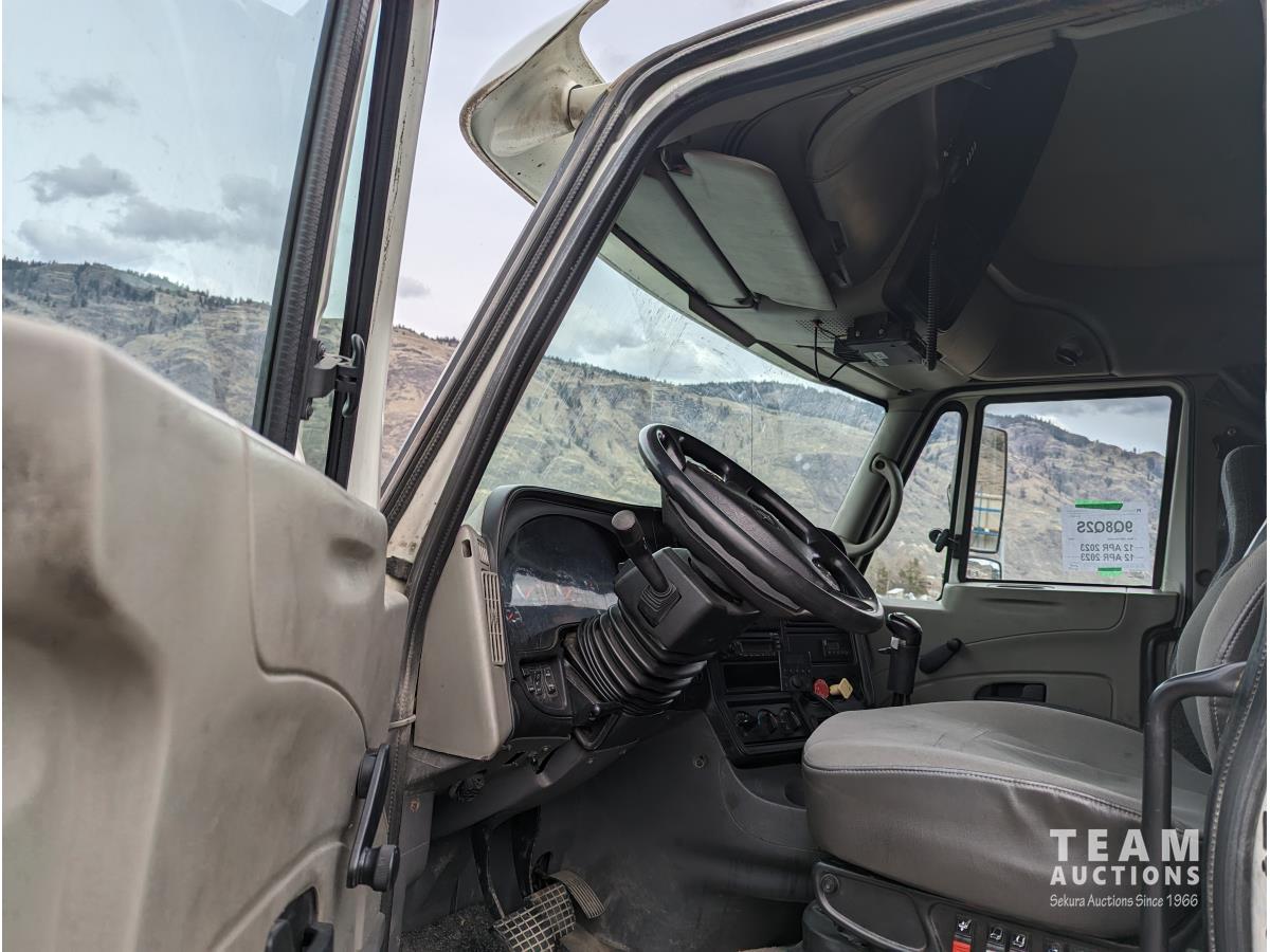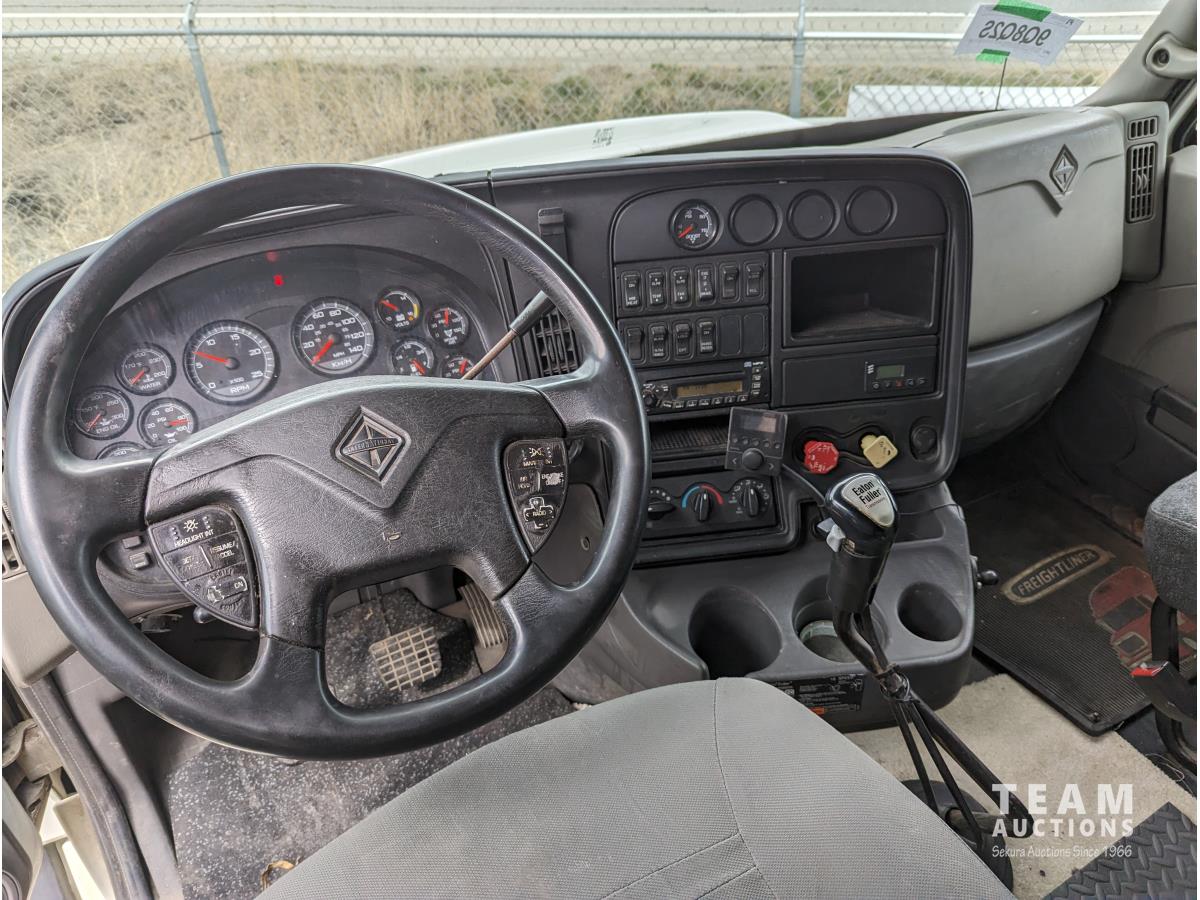 International 12.4 6 cylinder 475 HP diesel engine, engine brake, engine block heater, Eaton 18 speed manual transmission, A/C, cruise control, air ride driver seat, CB radio, air ride suspension, 12,000 lb front axle, 40,000 lb rear axles, diff lock, 216 inch WB, all aluminum wheels, 11R24.5 tires