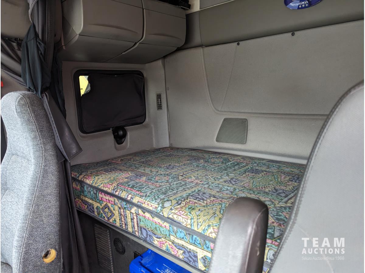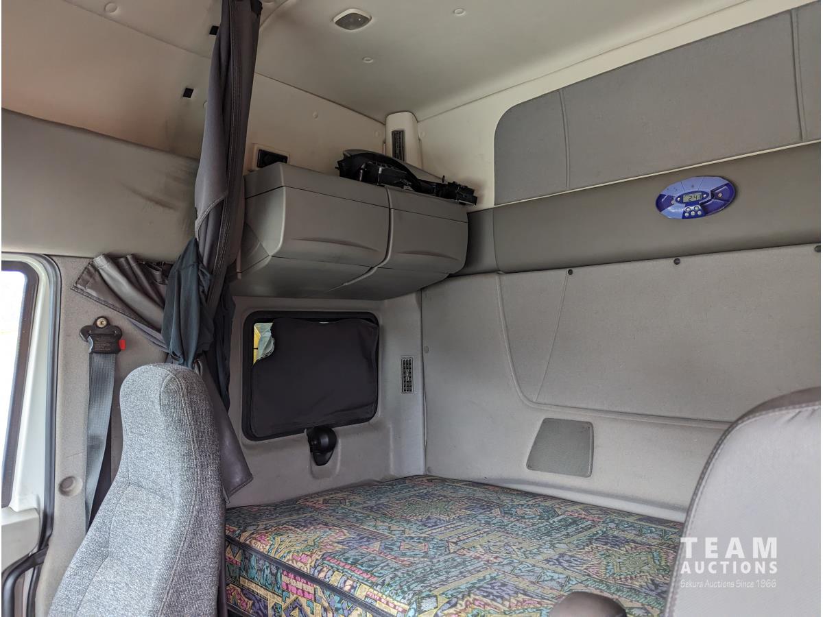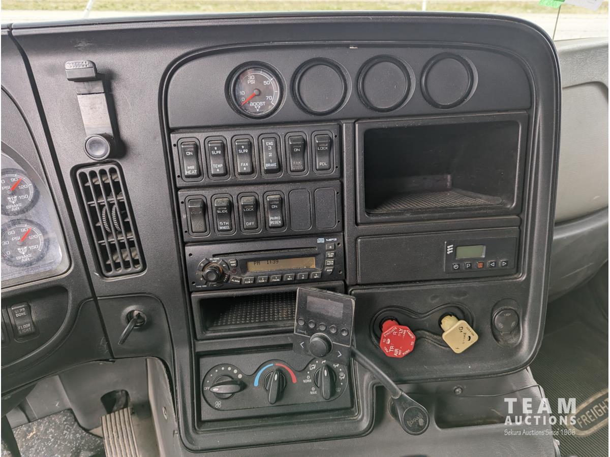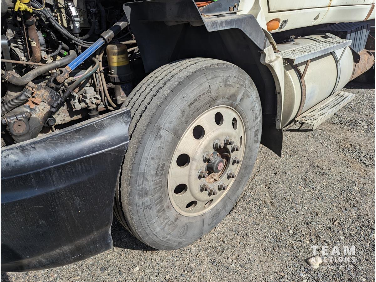 International 12.4 6 cylinder 475 HP diesel engine, engine brake, engine block heater, Eaton 18 speed manual transmission, A/C, cruise control, air ride driver seat, CB radio, air ride suspension, 12,000 lb front axle, 40,000 lb rear axles, diff lock, 216 inch WB, all aluminum wheels, 11R24.5 tires