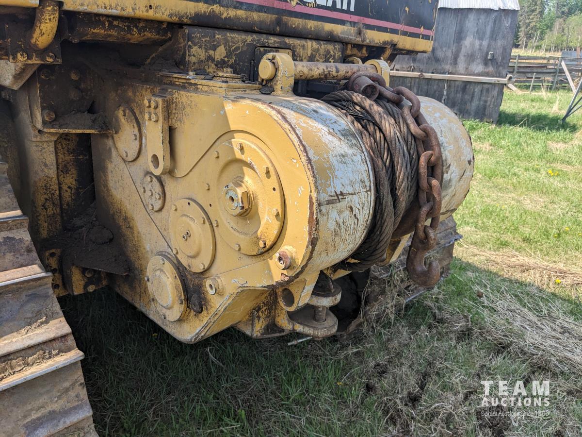 13 ft 6 way Caterpillar 4 cylinder 427 cu inch engine, 3 speed power shift, differential steering, 34 inch track pads, winch, drawbar, post puller chain