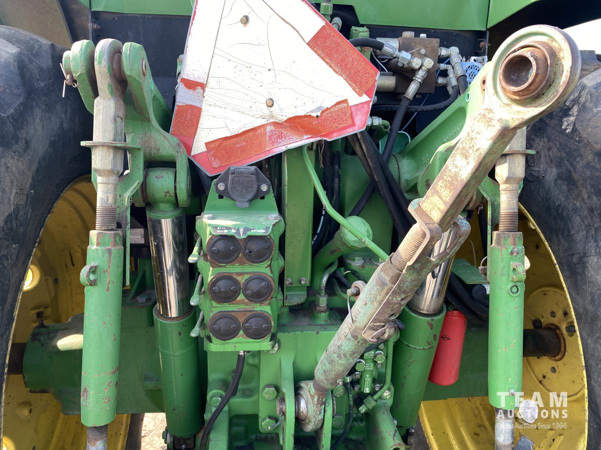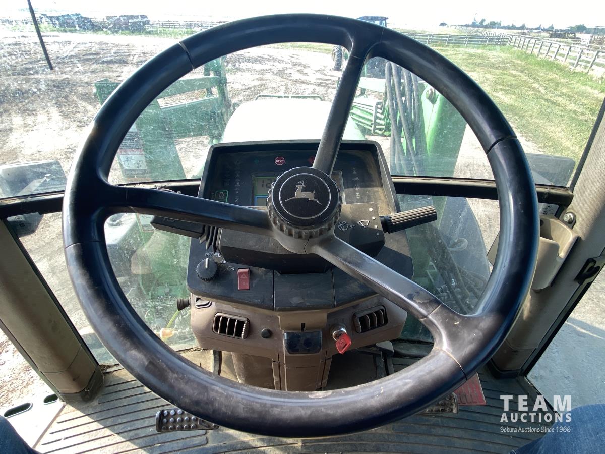 John Deere 6.8 L 6 cylinder 130 HP, diesel engine, 112 PTO HP, 19 speed power shift transmission, 540/1000 PTO, 3 point hitch, 3 rear hydraulic outlets, 16.9-28 front tires, 18.4R42 rear tires, set of clamp on duals