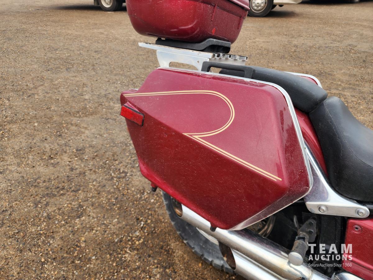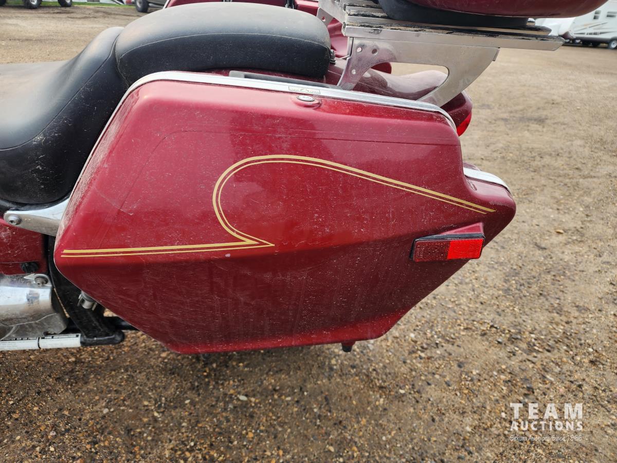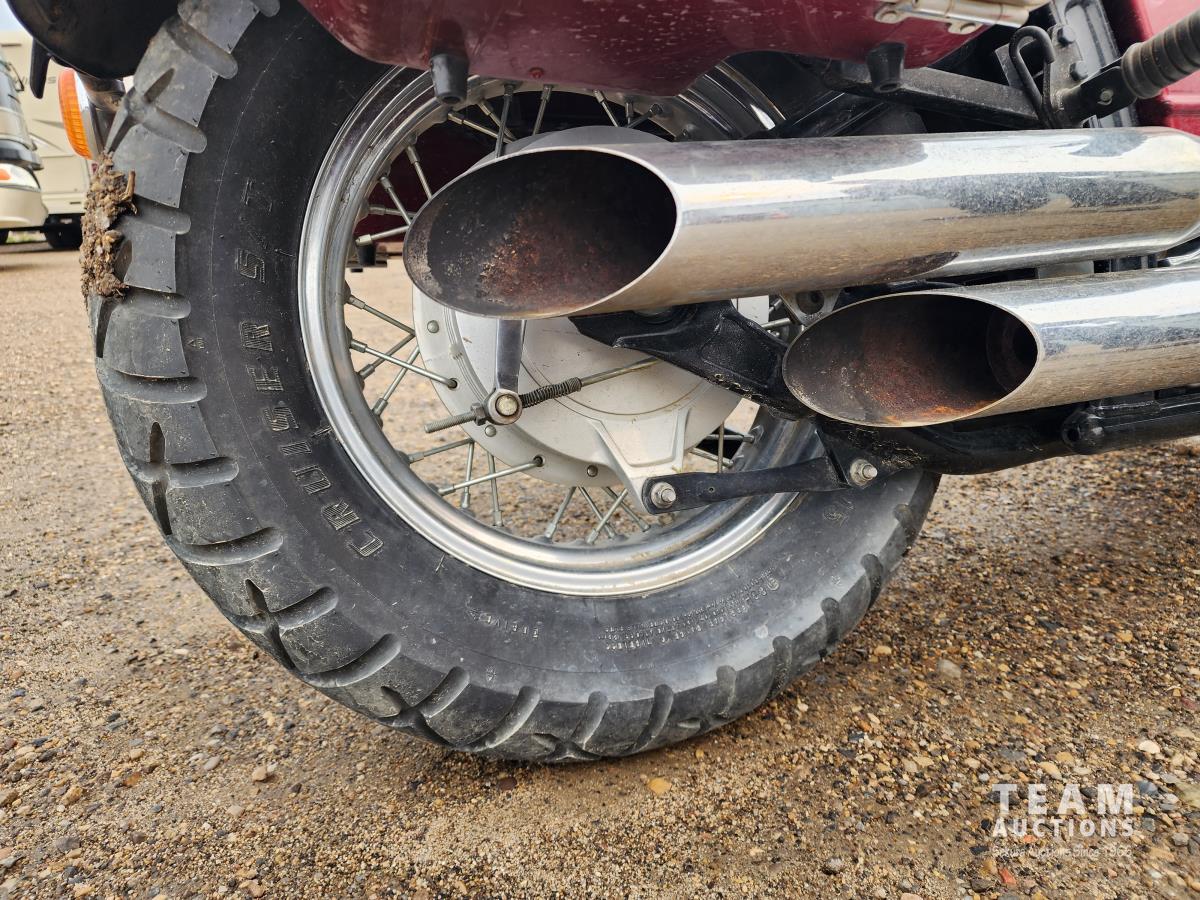650 cc engine, 5 speed transmission, windshield, saddle bags, rear trunk, extra muffler, front fender and cover, 100/90-19 front tire, 170/80-15 rear tire