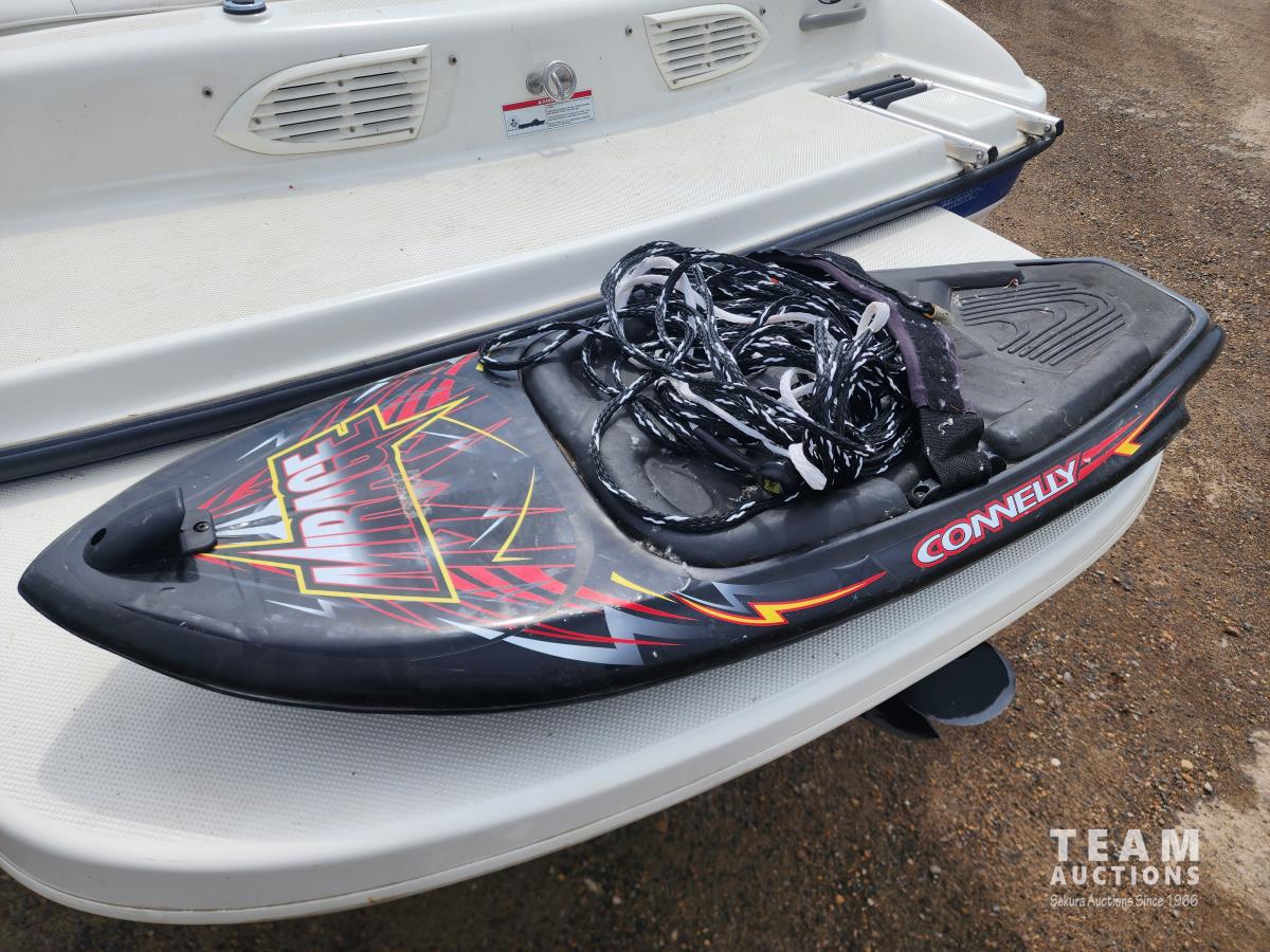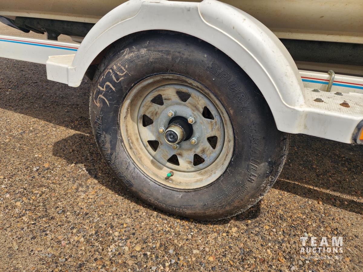 3.0 L Mercrusier, 7 seater, Pioneer CD player, swim platform, knee board, spare prop, swing away hitch, 2006 Karavan 18 ft S/A trailer, 185/80D13 tires