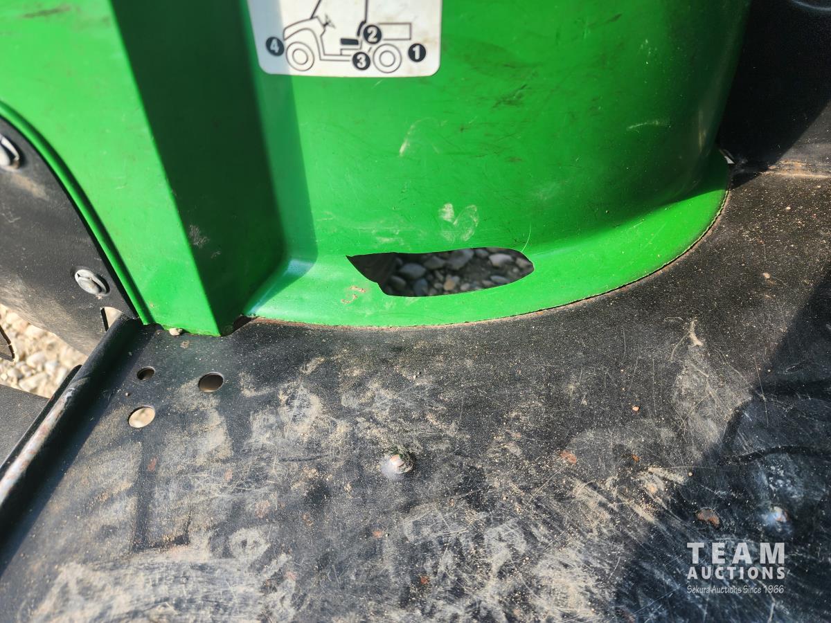 John Deere 12V, 3 cylinder engine, auto transmission, hydraulic dump box, 27X9.00R14 front tires, 27X11R14 rear tires