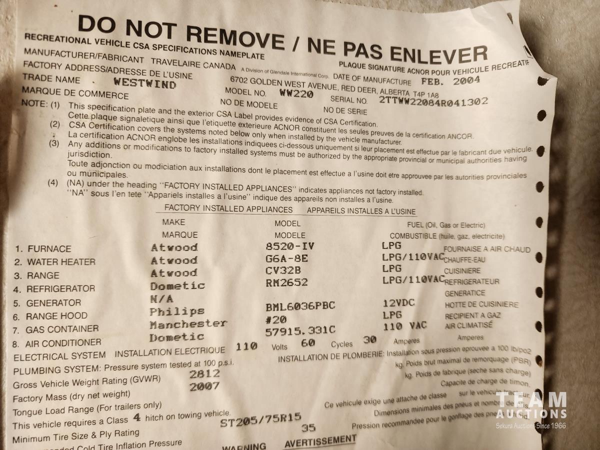 410 2004 Westwind WW220 22 Ft T/A Fifth Wheel Travel Trailer