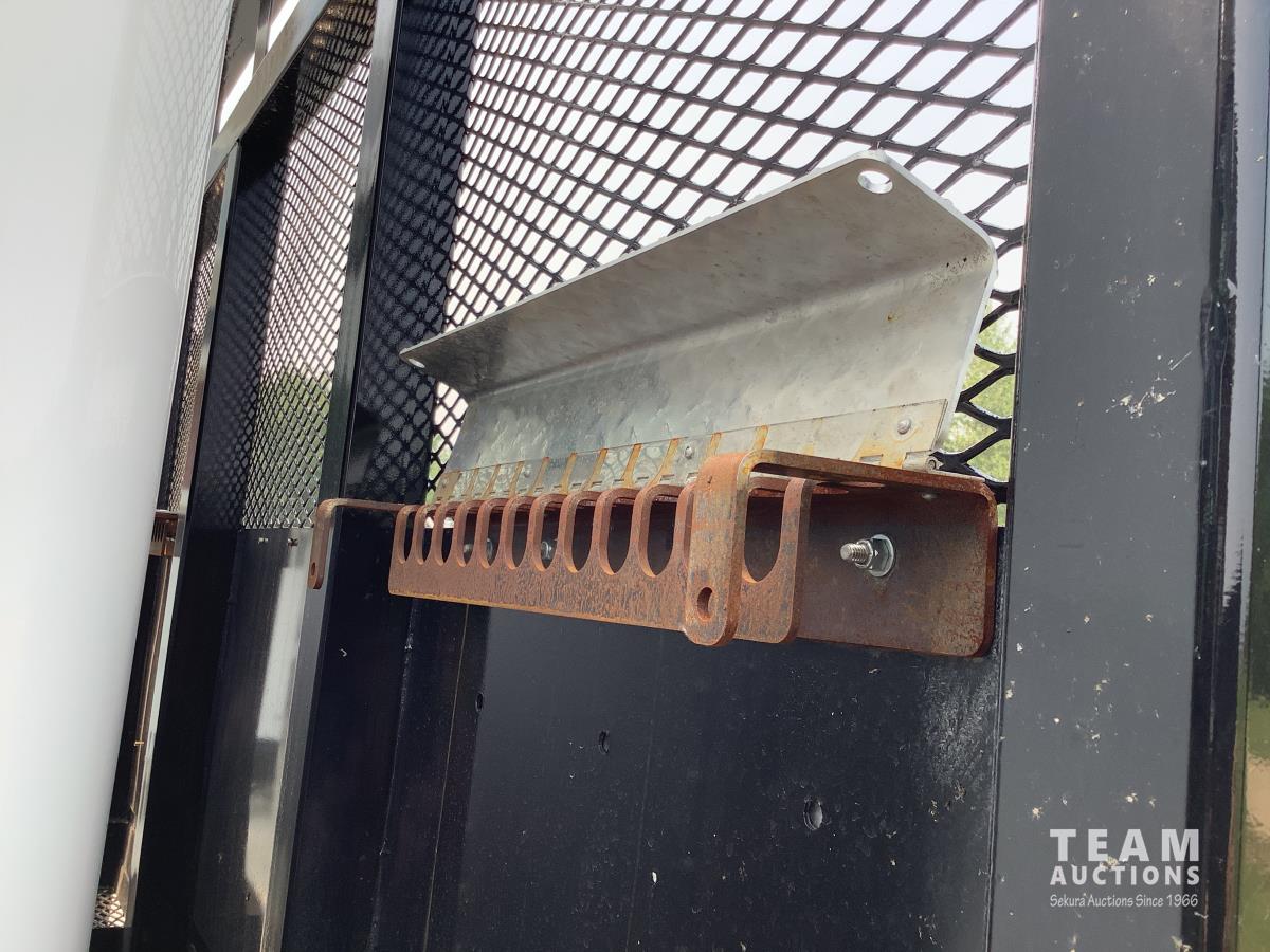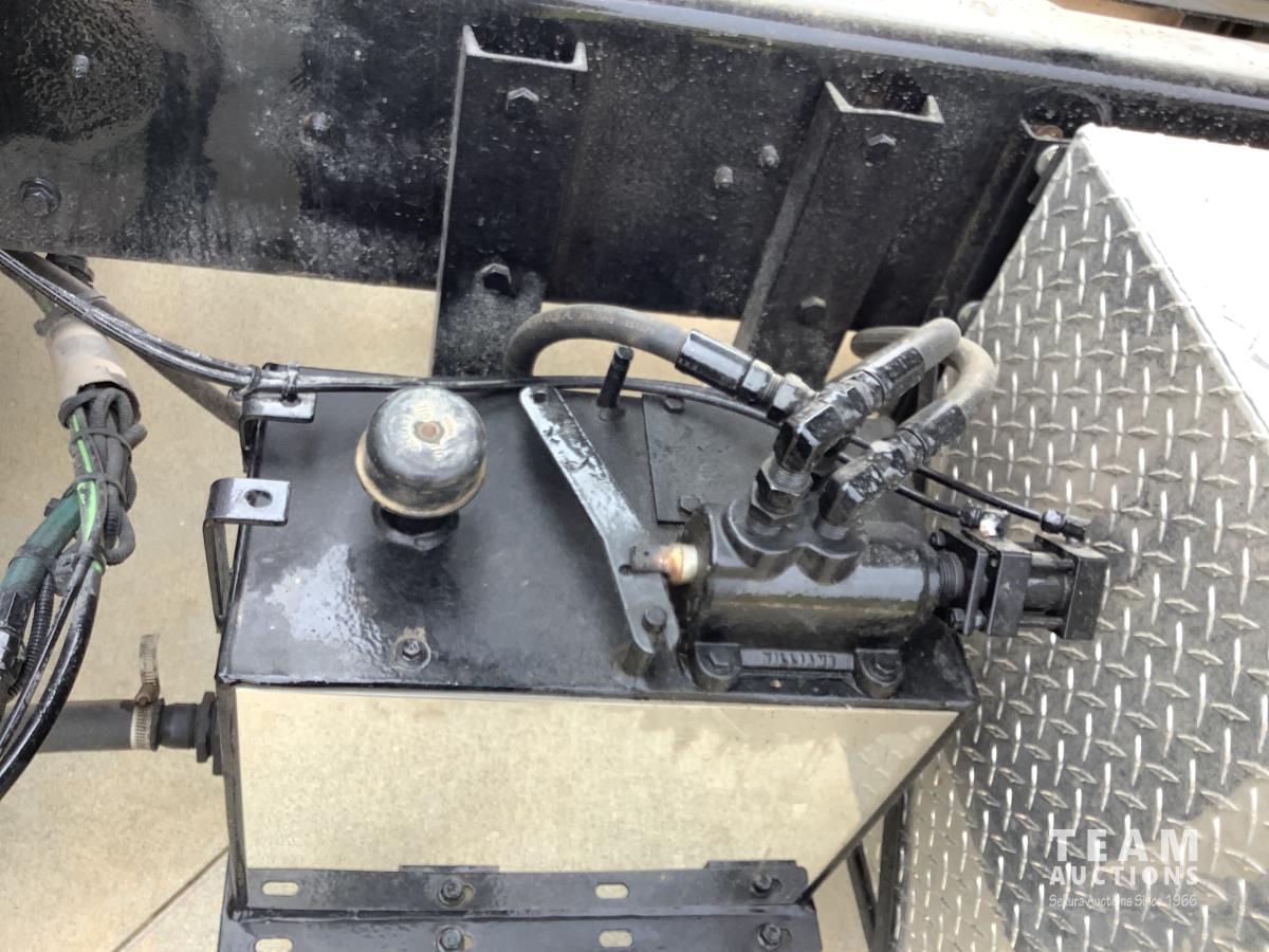 Scissor hoist, hydraulic pump and tank, (3) new aluminum tool boxes, head rack, chain hangers
