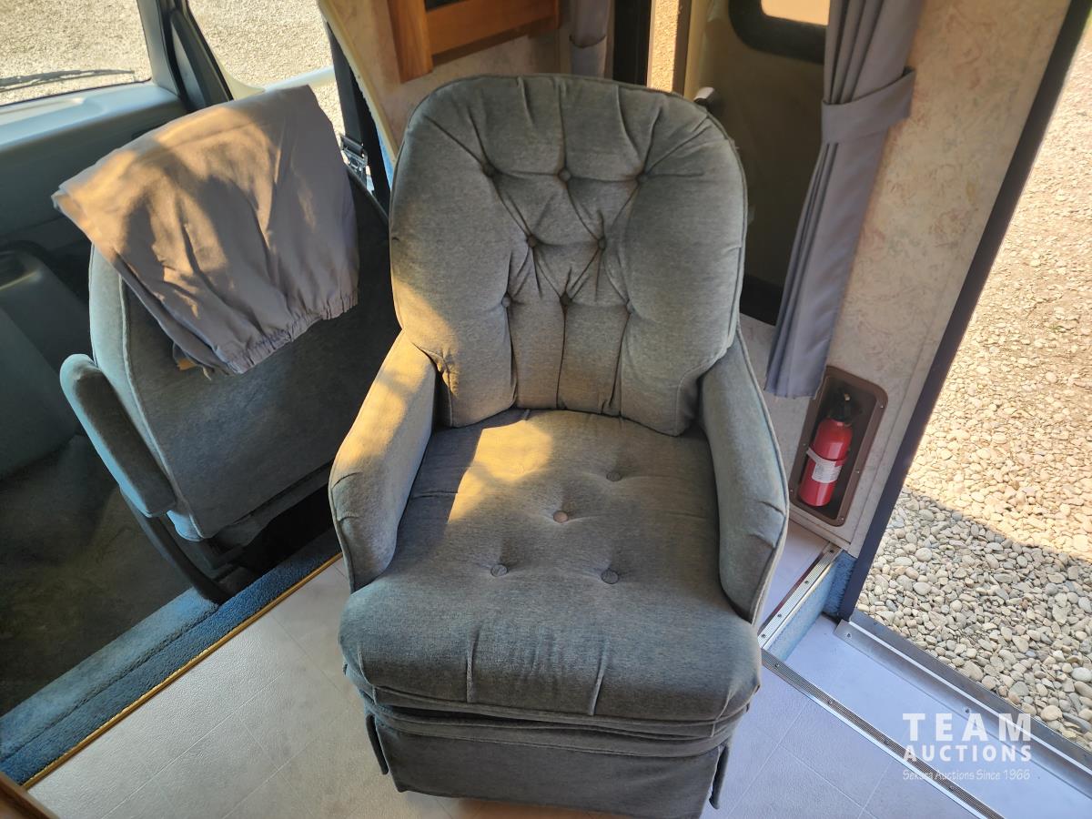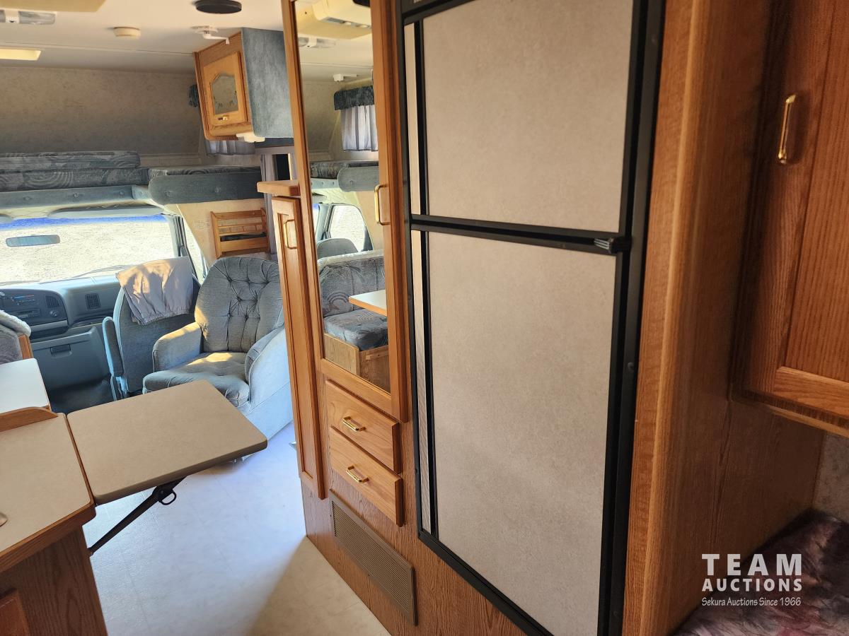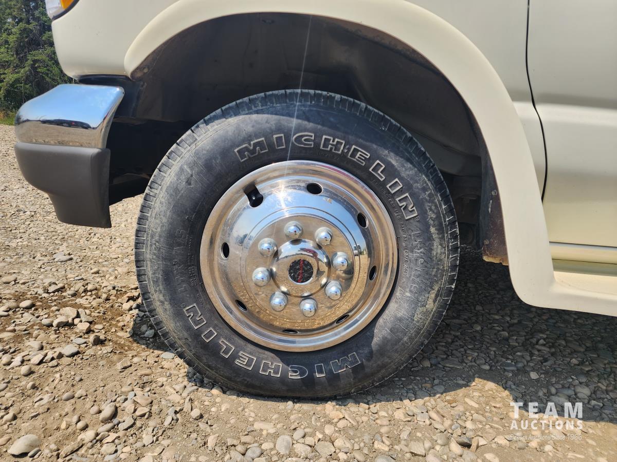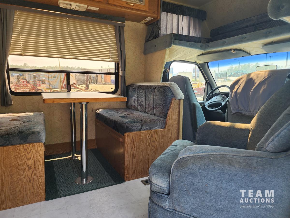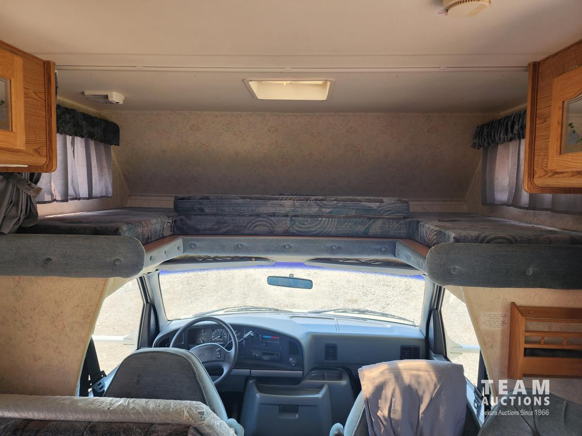 7.5 liter, V8 engine, auto transmission, P/W, P/L, A/C, radio, fridge, stove, microwave, dinette, bathroom, bed over cab, queen bed in rear, A/C, heat, awning, airbags, spare tire, 225/75R16 tires