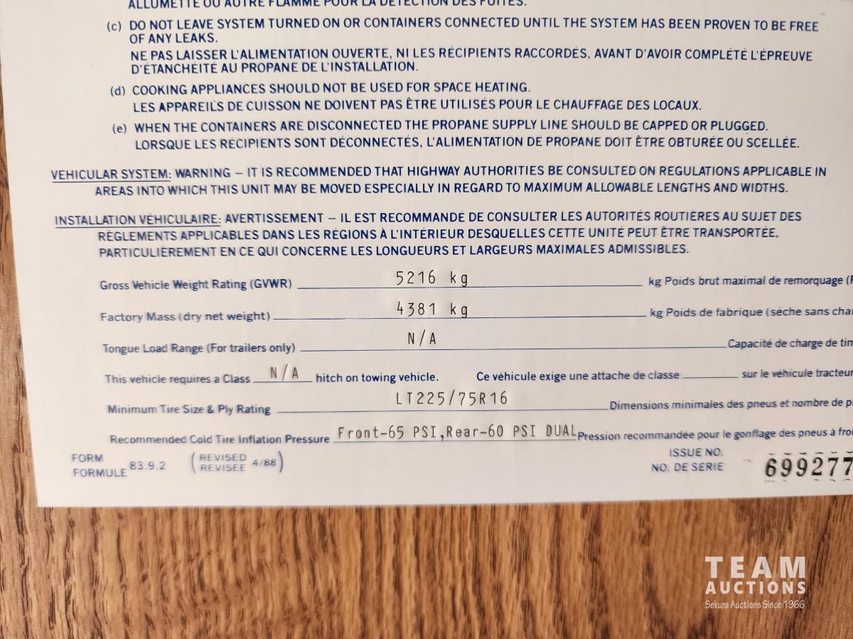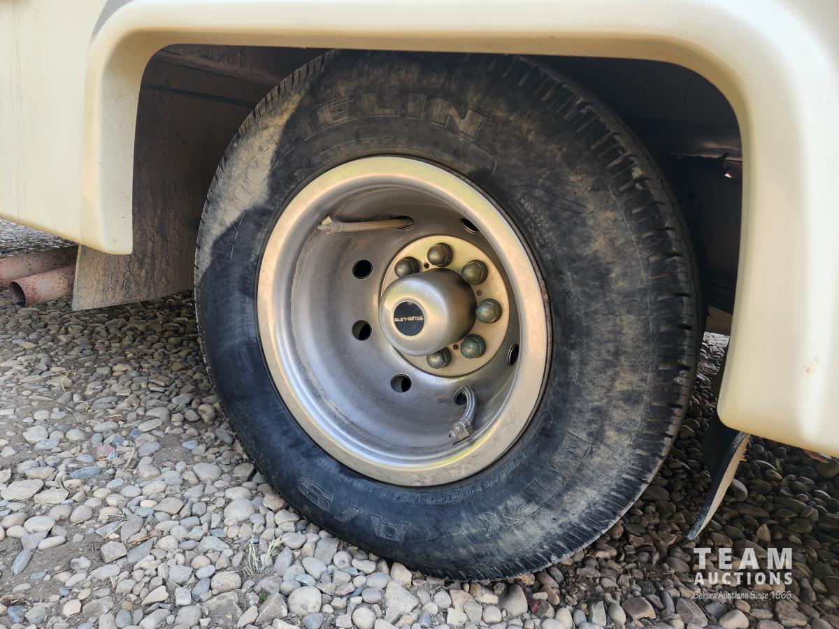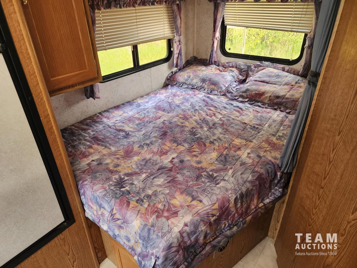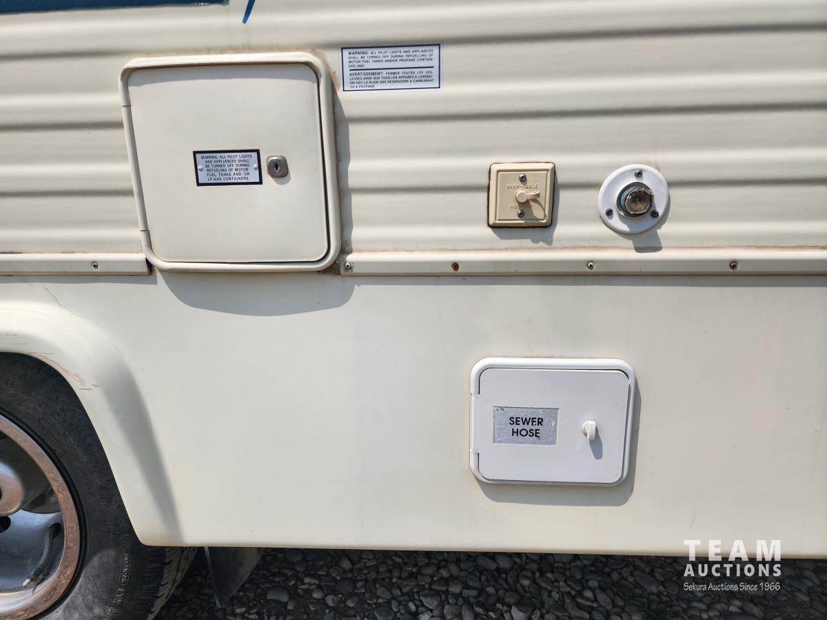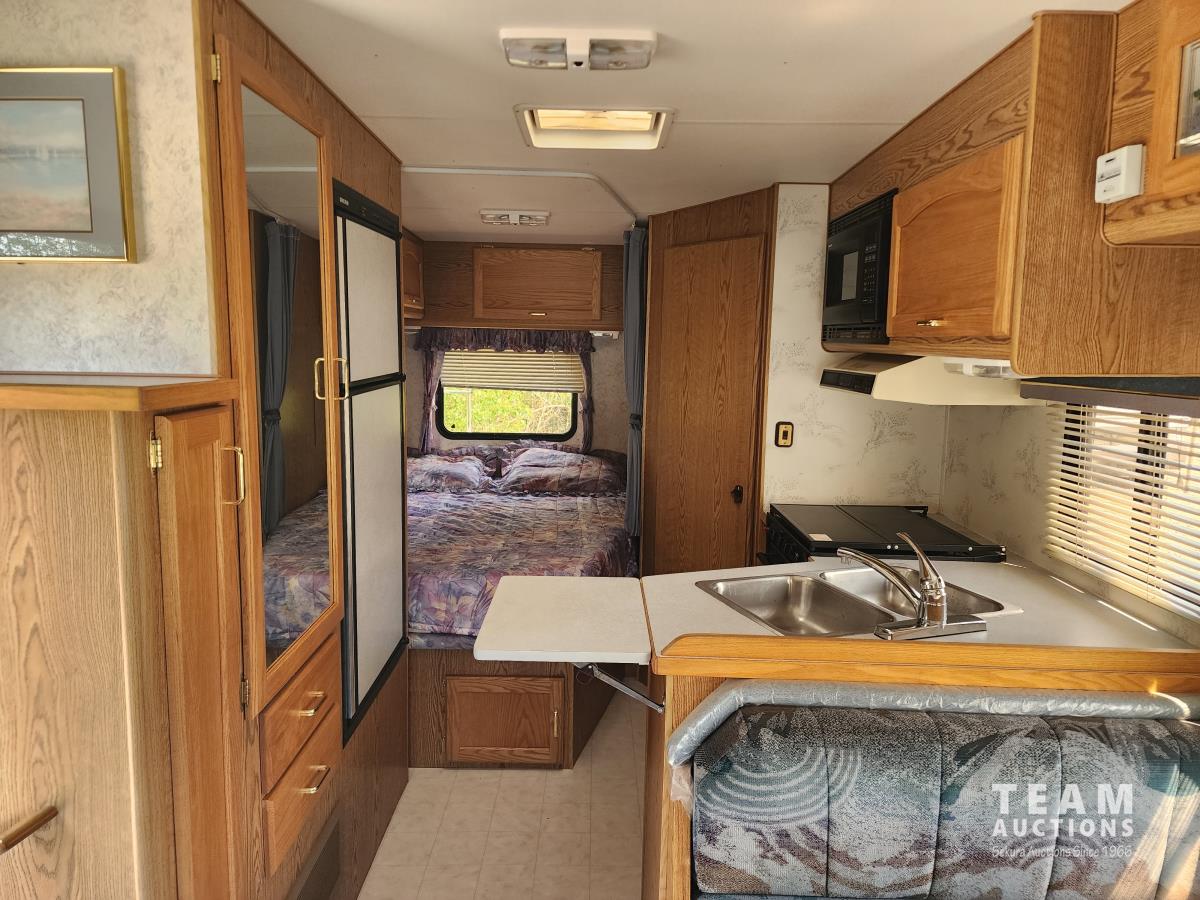 7.5 liter, V8 engine, auto transmission, P/W, P/L, A/C, radio, fridge, stove, microwave, dinette, bathroom, bed over cab, queen bed in rear, A/C, heat, awning, airbags, spare tire, 225/75R16 tires