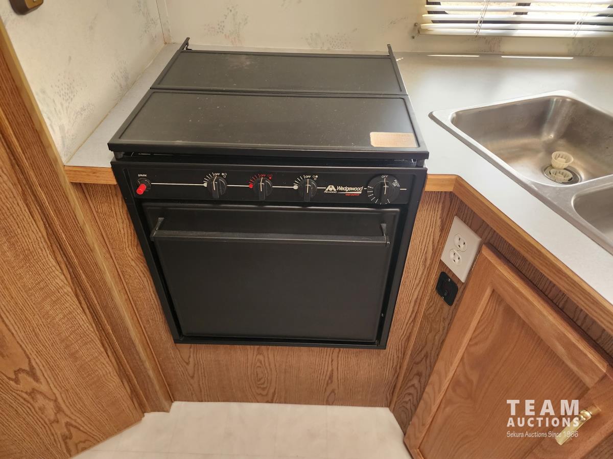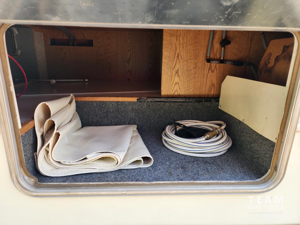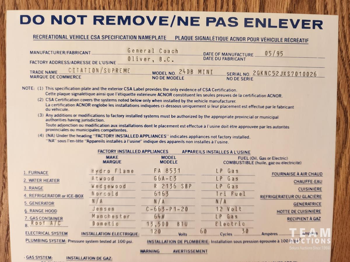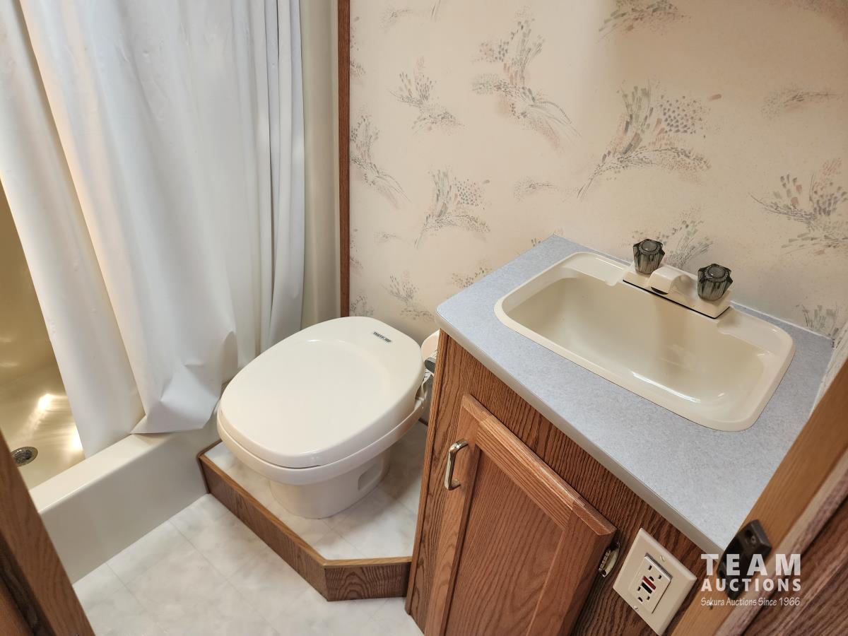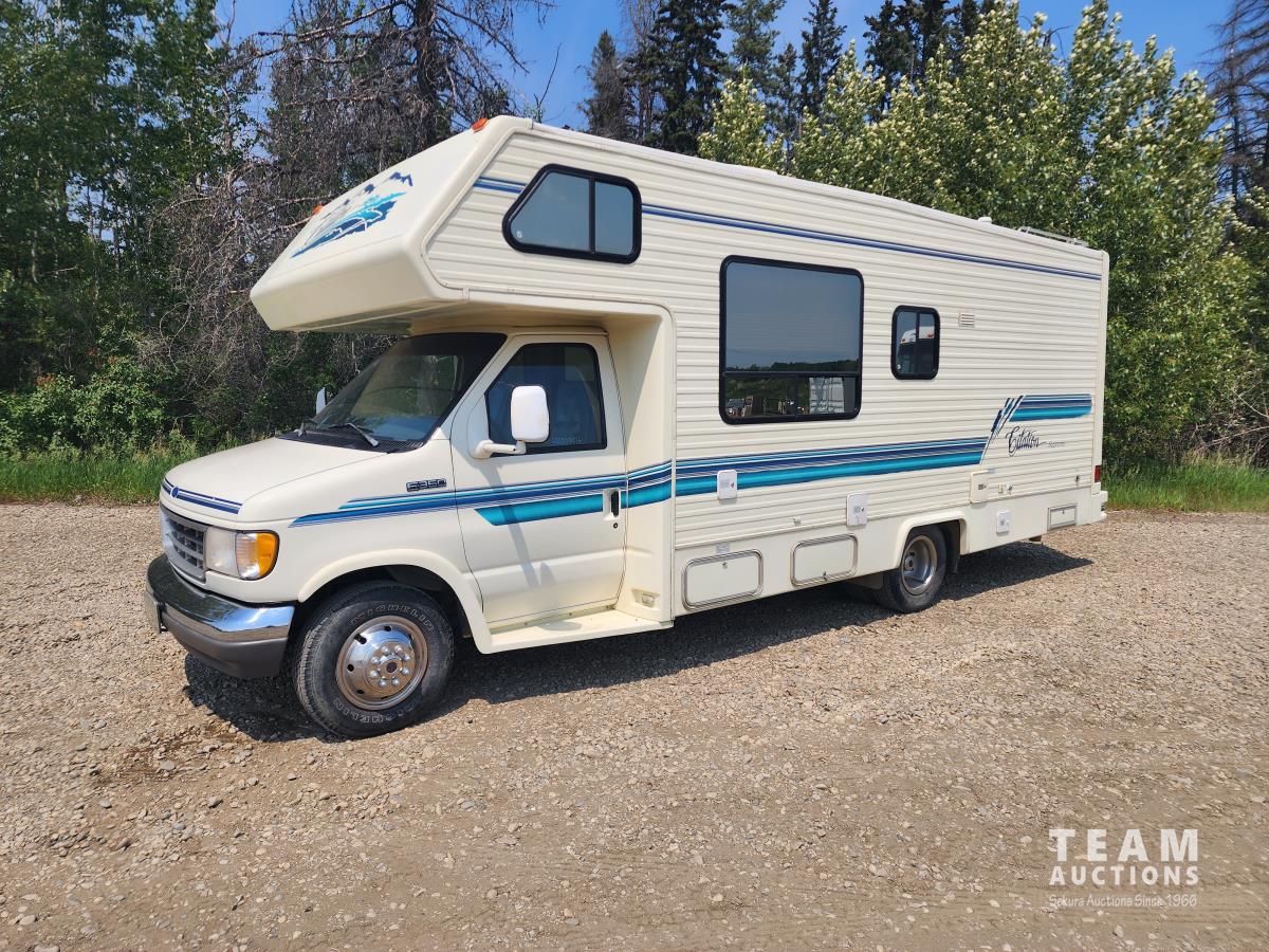 7.5 liter, V8 engine, auto transmission, P/W, P/L, A/C, radio, fridge, stove, microwave, dinette, bathroom, bed over cab, queen bed in rear, A/C, heat, awning, airbags, spare tire, 225/75R16 tires