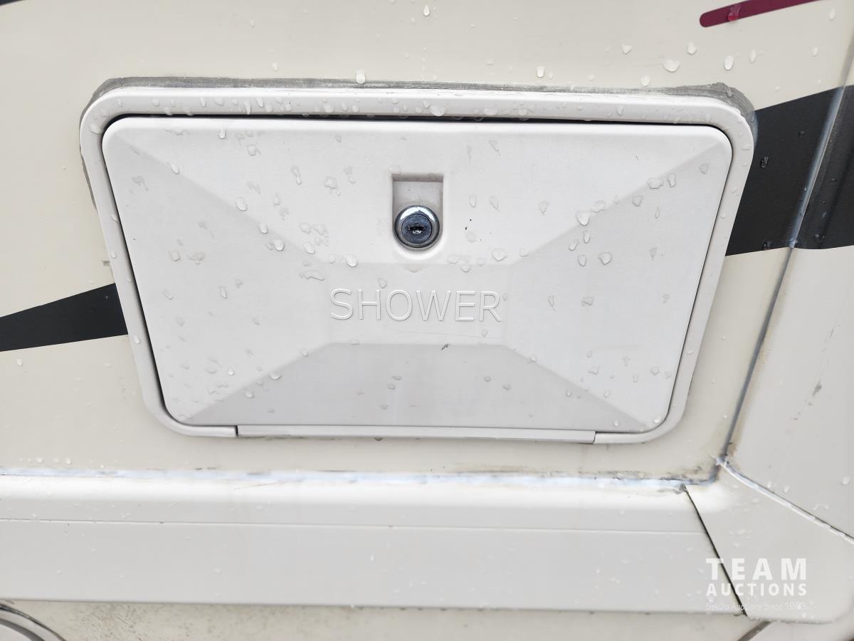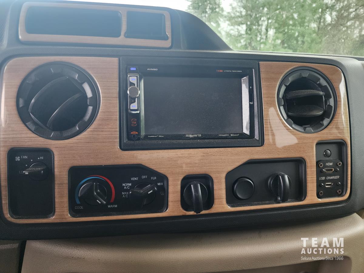 Triton V10 engine, TorqShift auto transmission, P/W, P/L, A/C, backup camera, (1) slide out, fridge, stove, microwave, dinette, couch, bed over cab, bathroom, queen bed with lots of storage, A/C, heat, Onan QG 4000 generator, rear receiver hitch, awning, outside shower, 225/75R16 tires