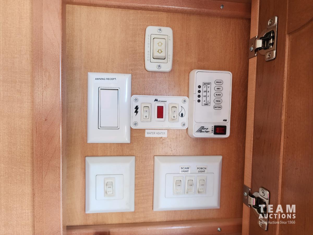 (2) slide outs, fridge, stove, microwave, couch, rocking chair, dinette, shower, sink, toilet, queen bed, awing, A/C, heat, 235/80R16