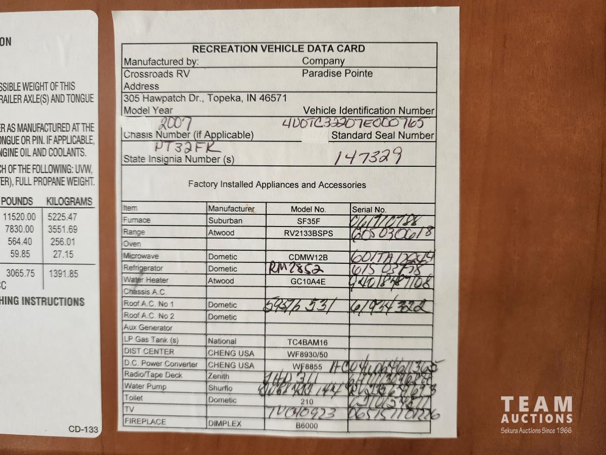 385 2007 Cross Roads Paradise Point 32 Ft T/A Travel Trailer