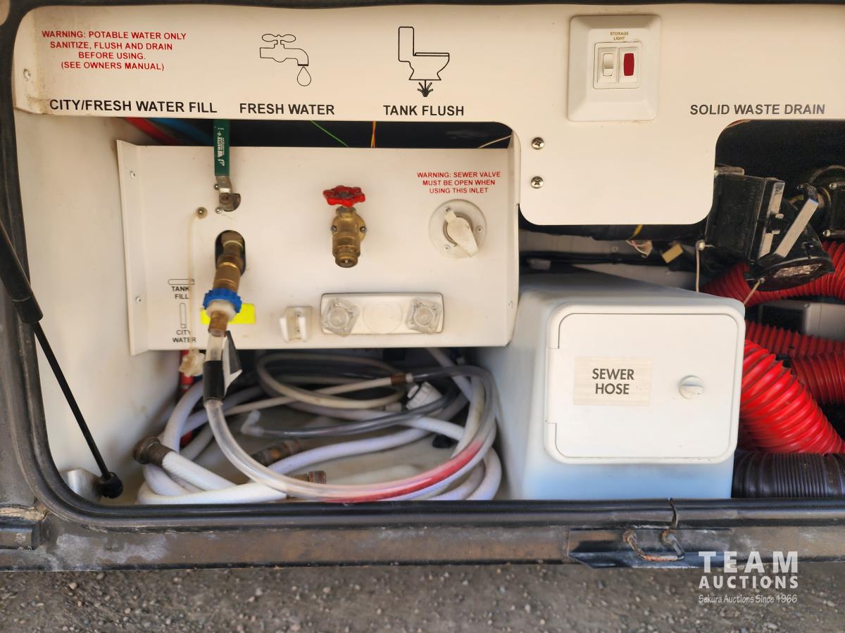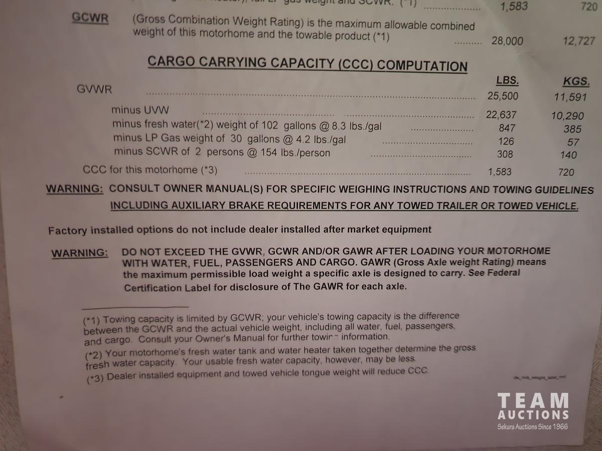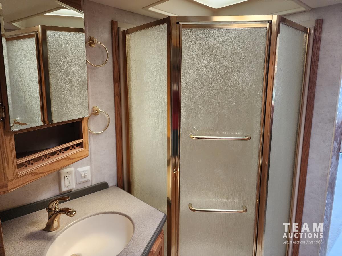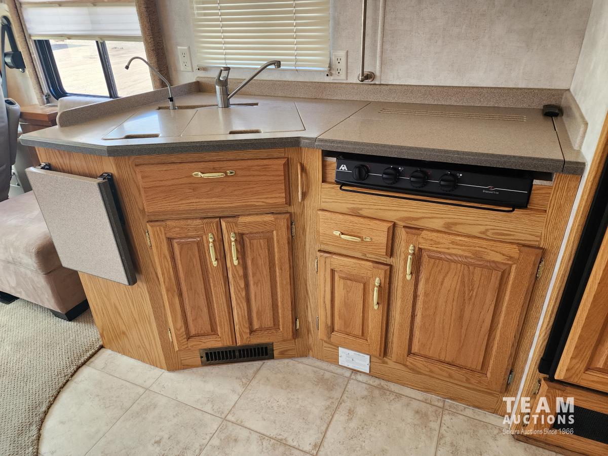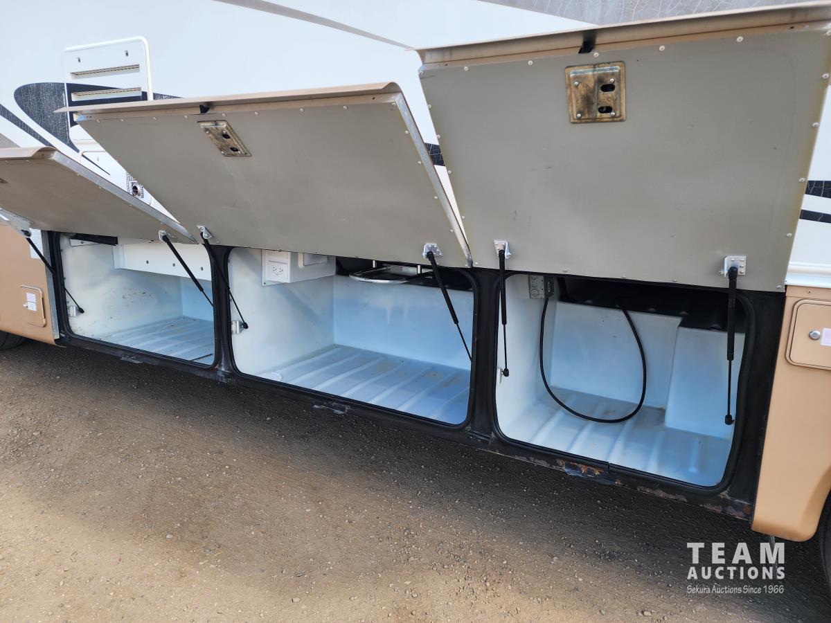Cummins 315, diesel engine, Allison auto transmission, air brakes, Onan Generator, (3) slide outs, couch, dinette, fridge, stove, microwave, full bathroom, queen bed, A/C, heat, backup camera, outdoor shower, 225/70R22.5 tires