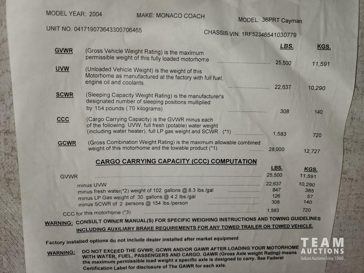 377 2004 Monaco Cayman 36 Ft S/A Dually Motorhome