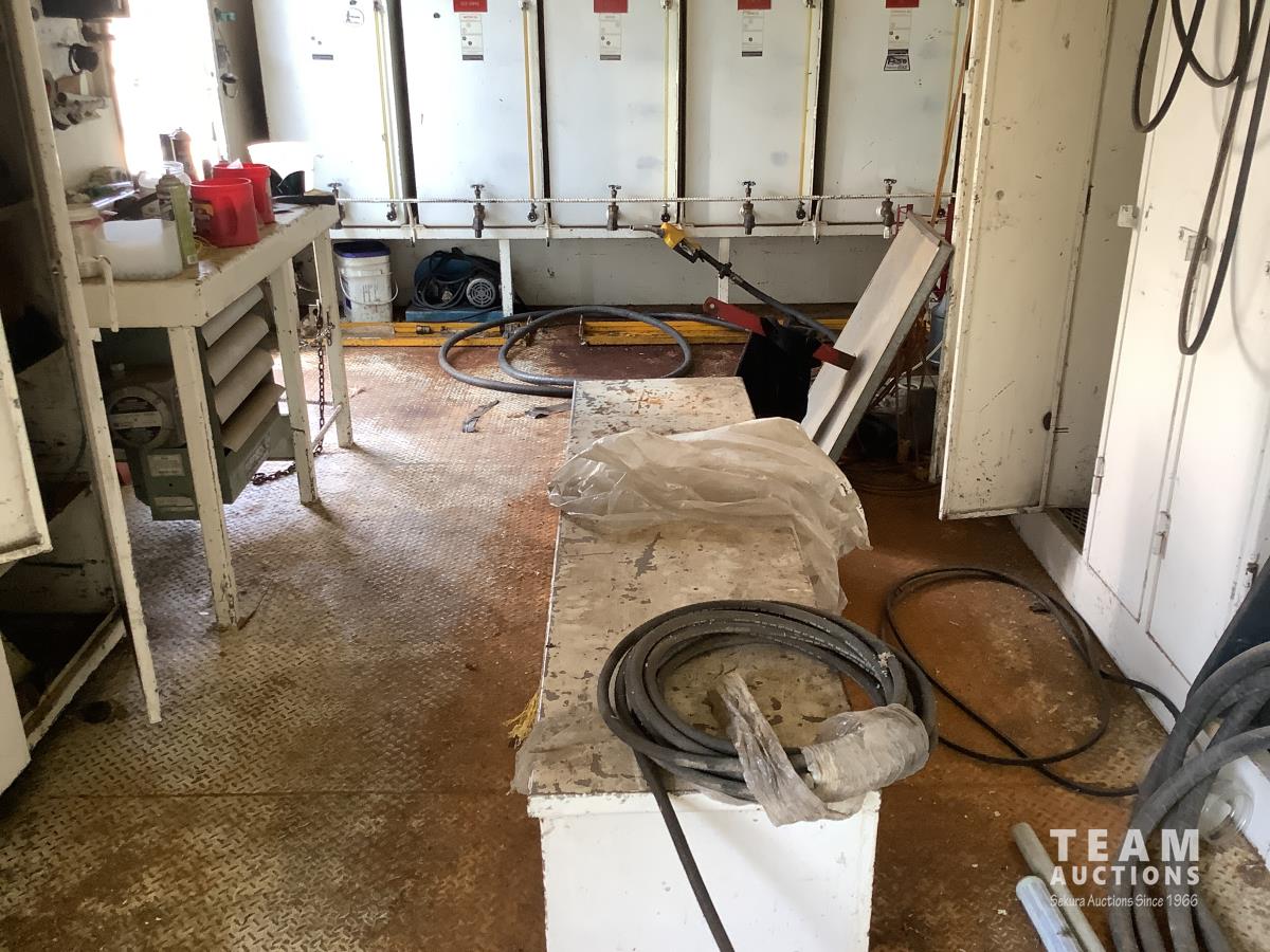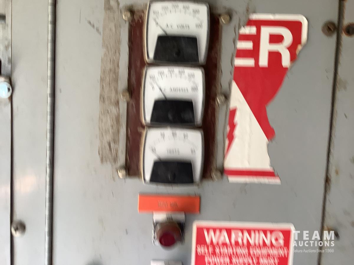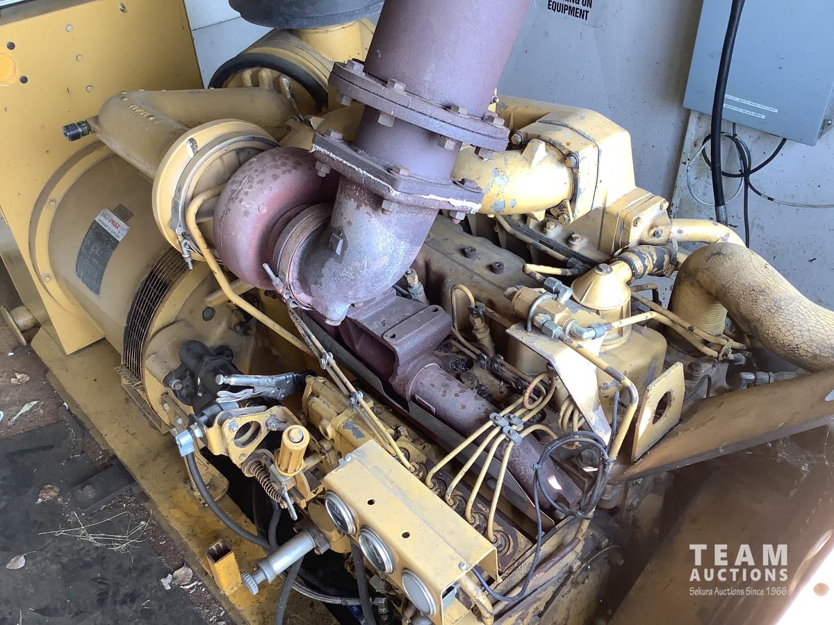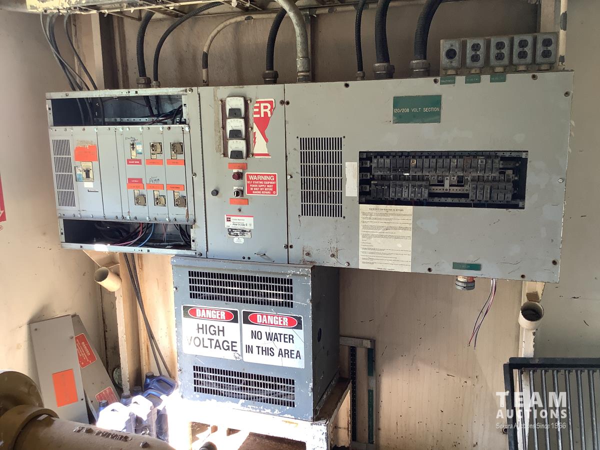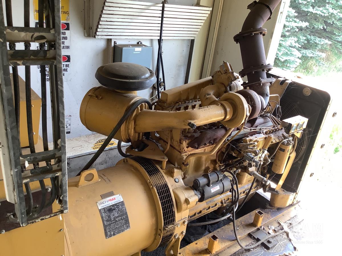 Caterpillar 3306 engine with Magnmax synchronous model 432RSL4013 250 KVA, 3 phase generator, oil storage tanks, diesel storage tank, heaters, parts storage area, electrical panel boxes