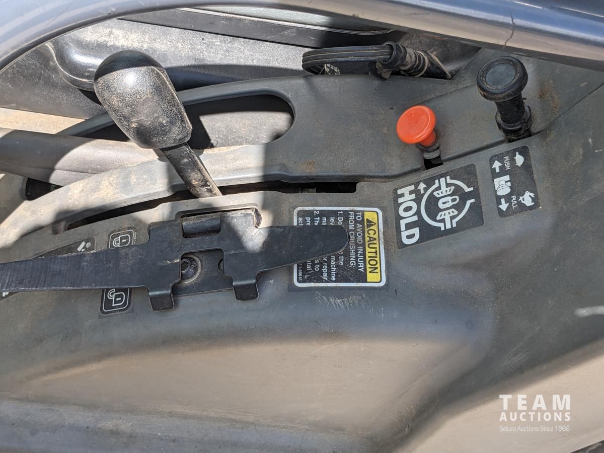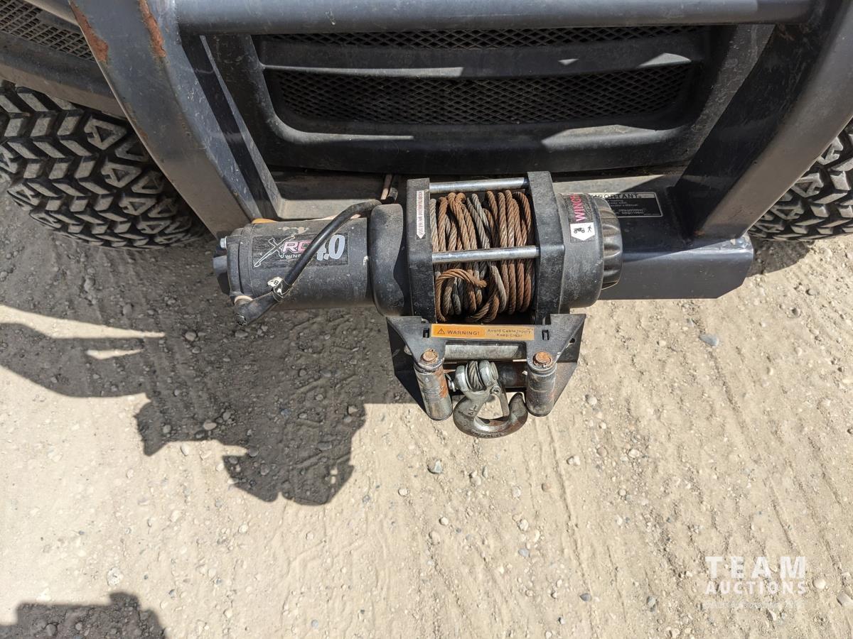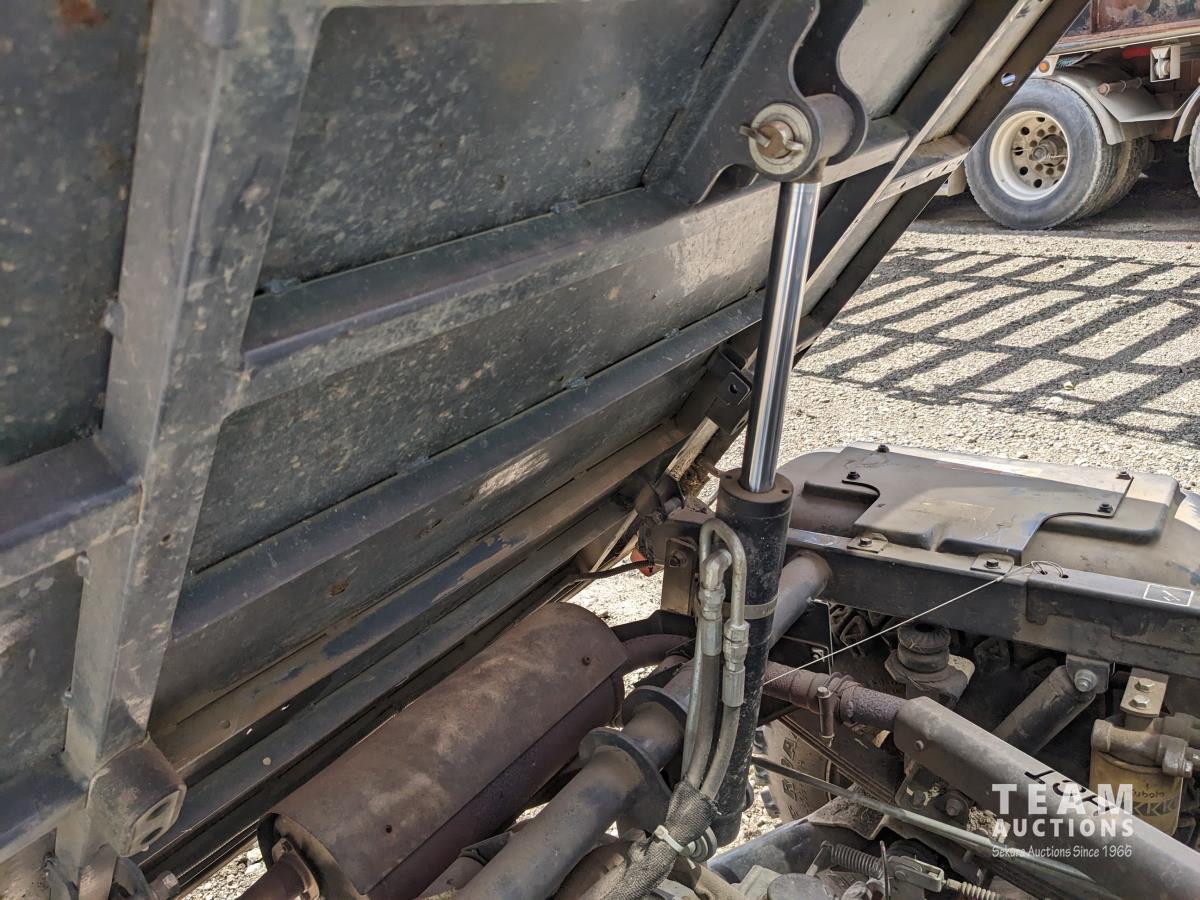 Front winch, Kubota D1105 3 cylinder diesel engine, 3 speed hydro transmission, cab, heat, A/C, radio, power steering, 2WD option, hydraulic dump box, 25X10.00-12 tires