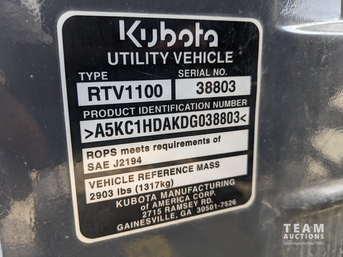 373 2013 Kubota RTV1100 4X4 Side X Side UTV