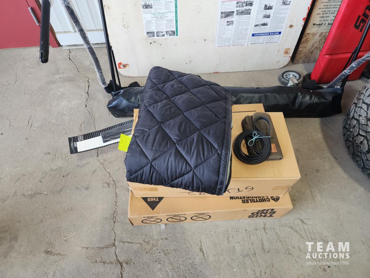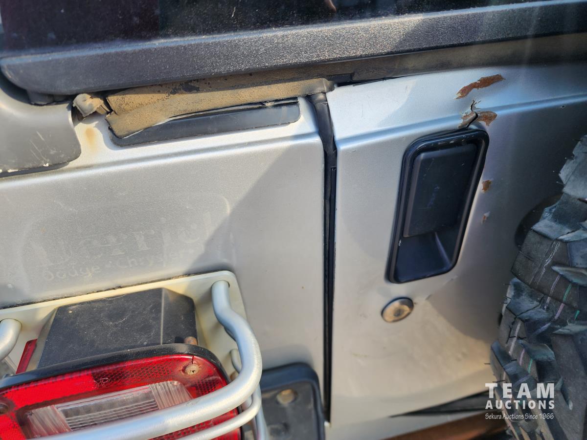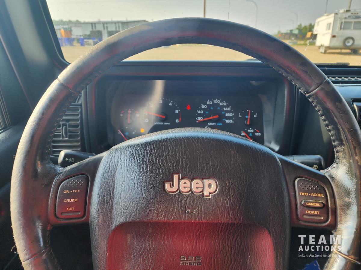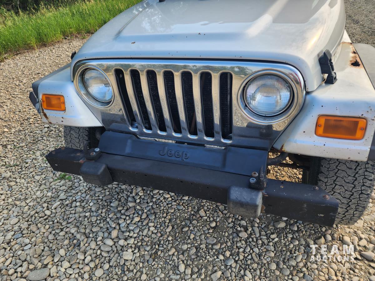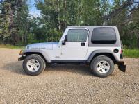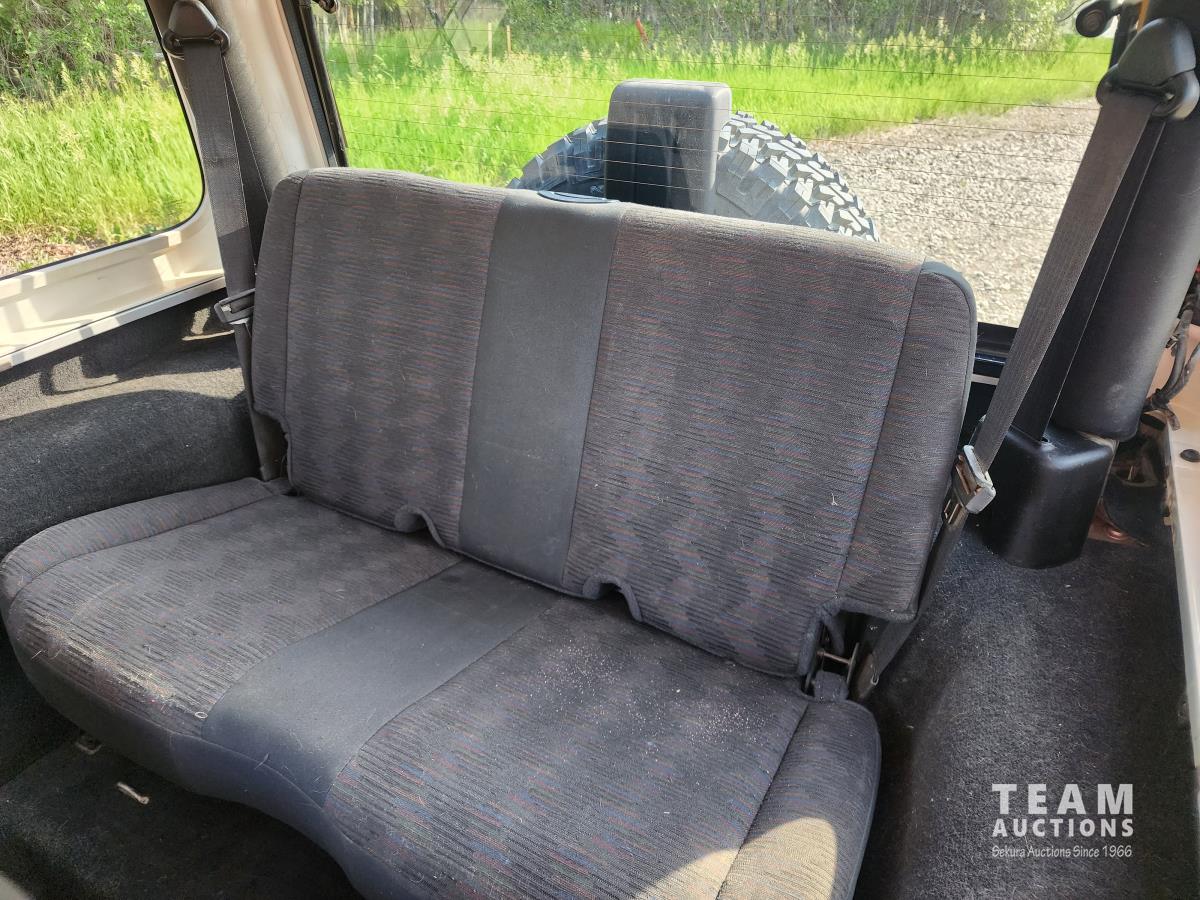 4.0 L, 3 speed automatic transmission, A/C, 4 wheel diff lock, removeable storage box, chrome headlight bezels and grill cover, receiver hitch, original soft top (new in box), custom quilted headliner, (4) extra tires, 245/75R16 tires