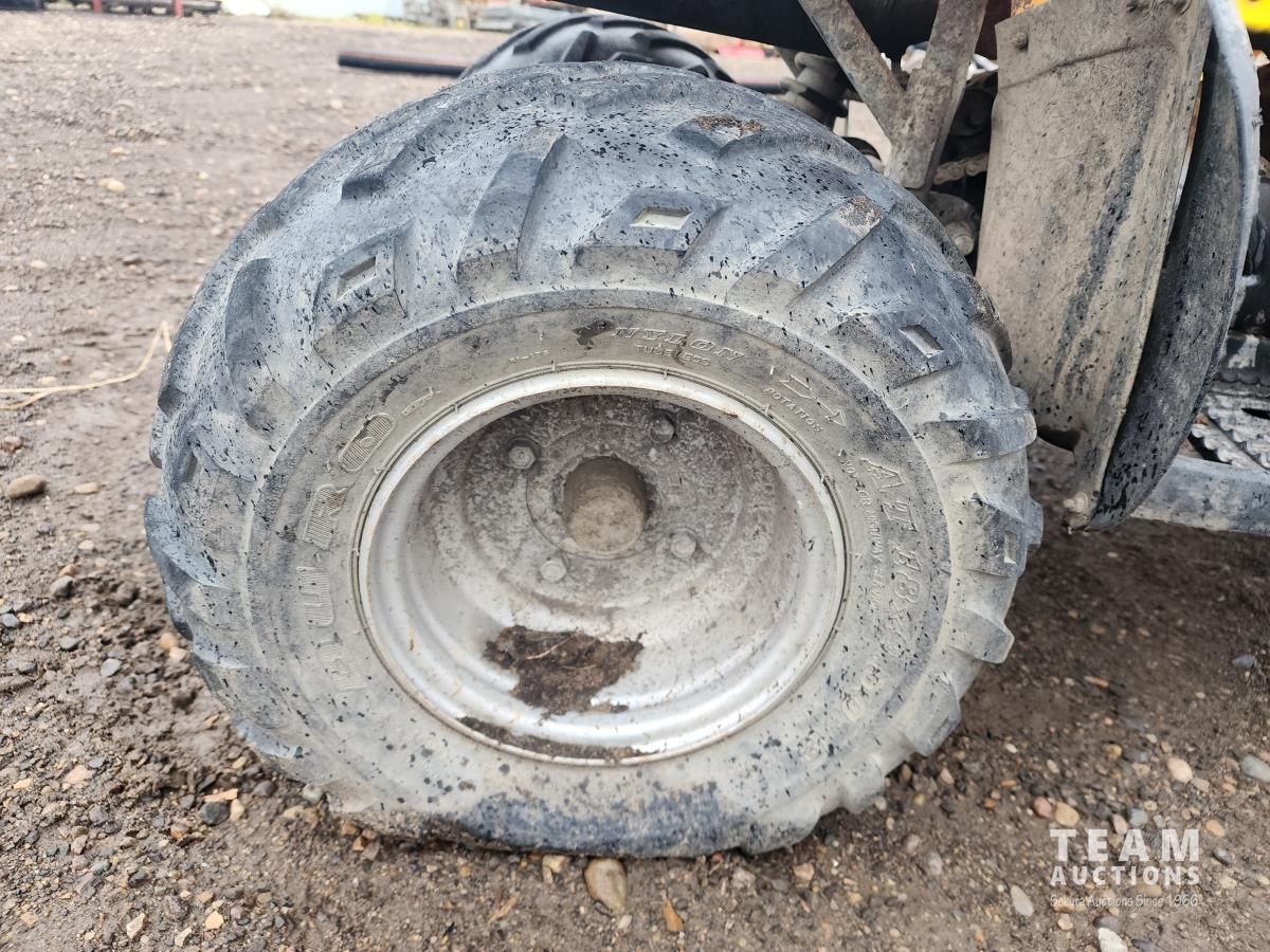 90 cc, electric start, 19X7-8 front tires, 18X9.50-8 rear tires