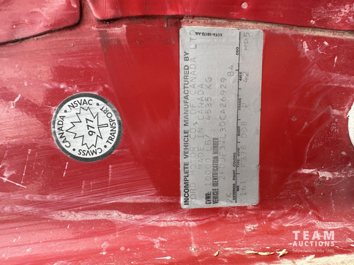 460 V8 engine, 4 speed manual transmission, rear deck with poly tank, skid fuel tank, pump and tool boxes