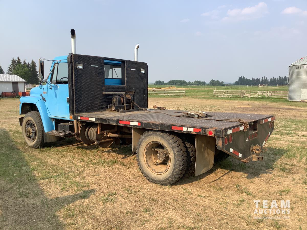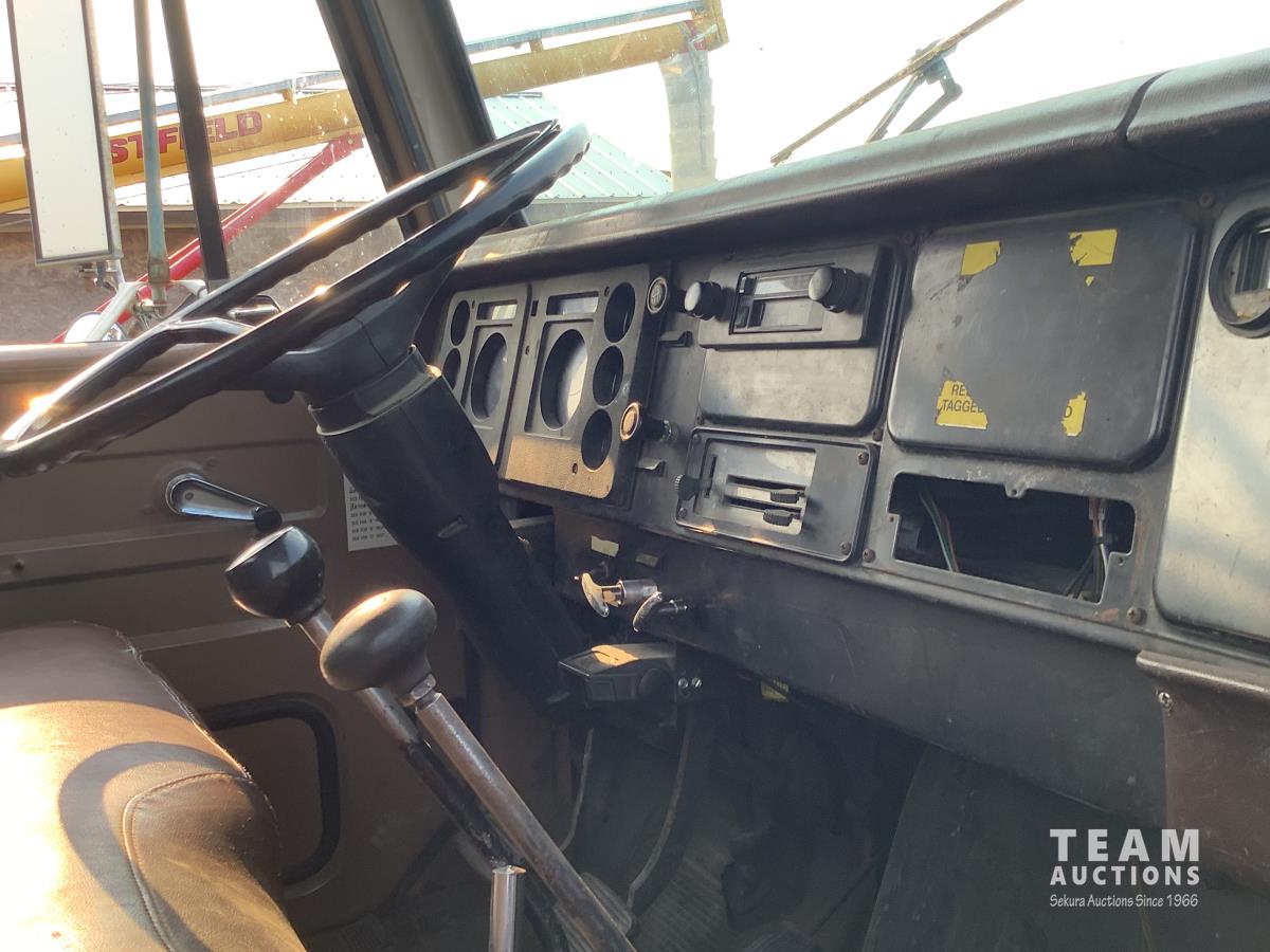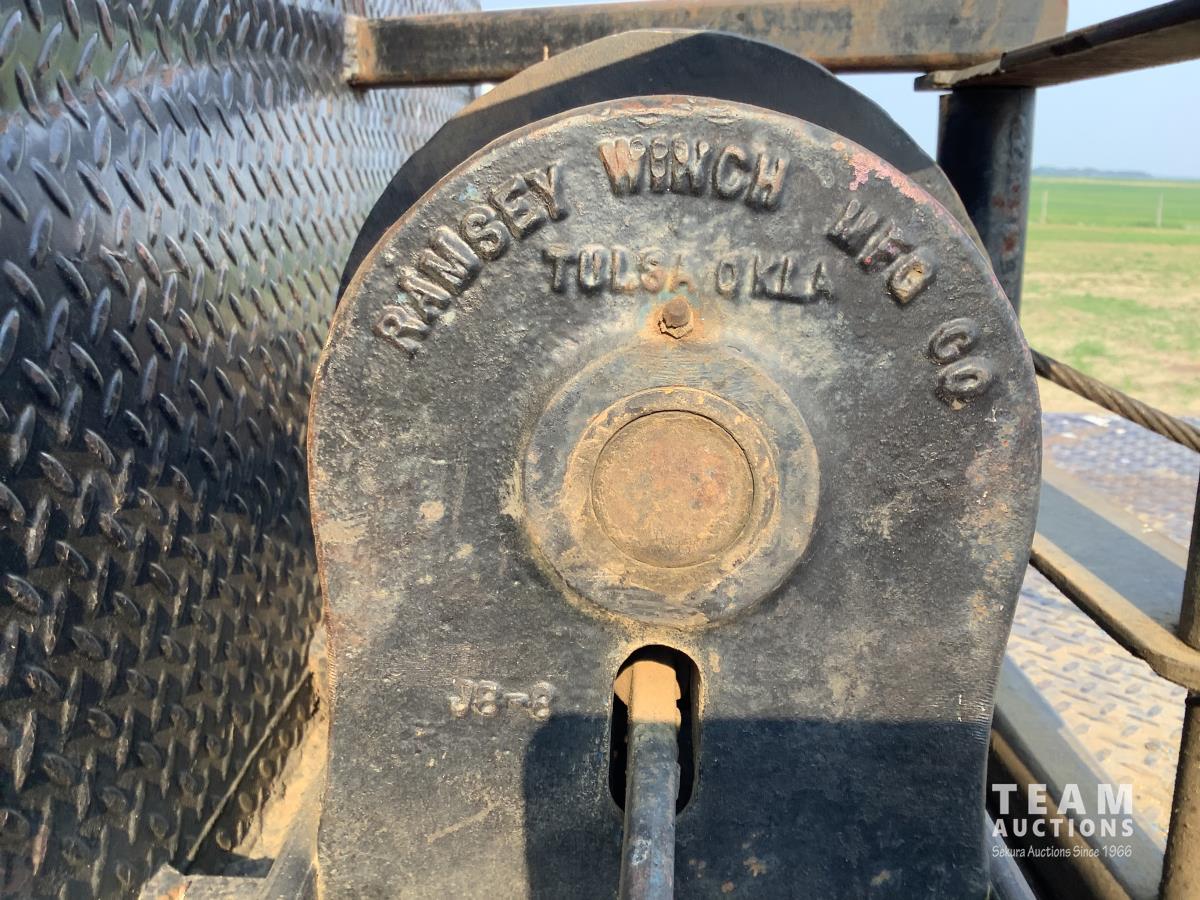 International V8 diesel engine, 5X4 manual transmission, steel deck with 5th wheel hitch, Ramsey winch, rear tow package, 2 inch PTO drive fuel pump with hose reel, 9.00X20 rear tires