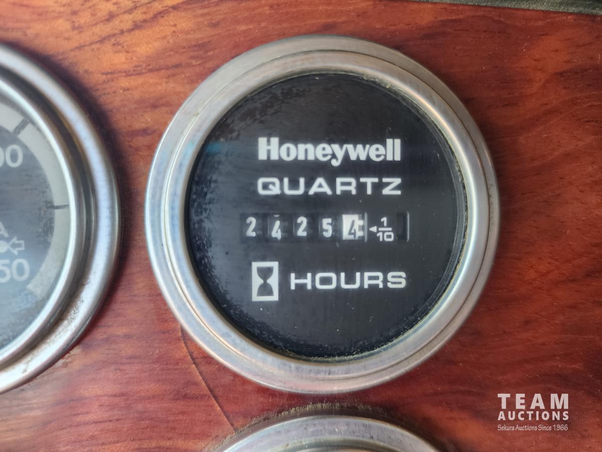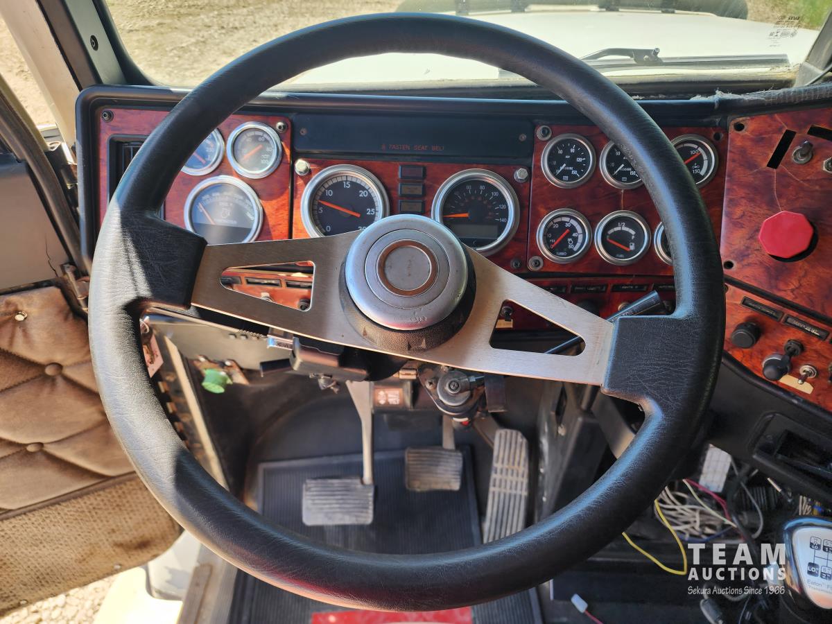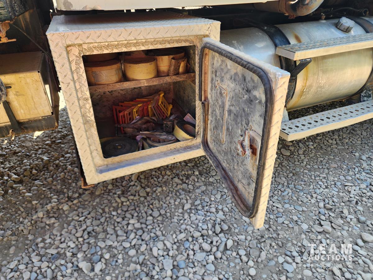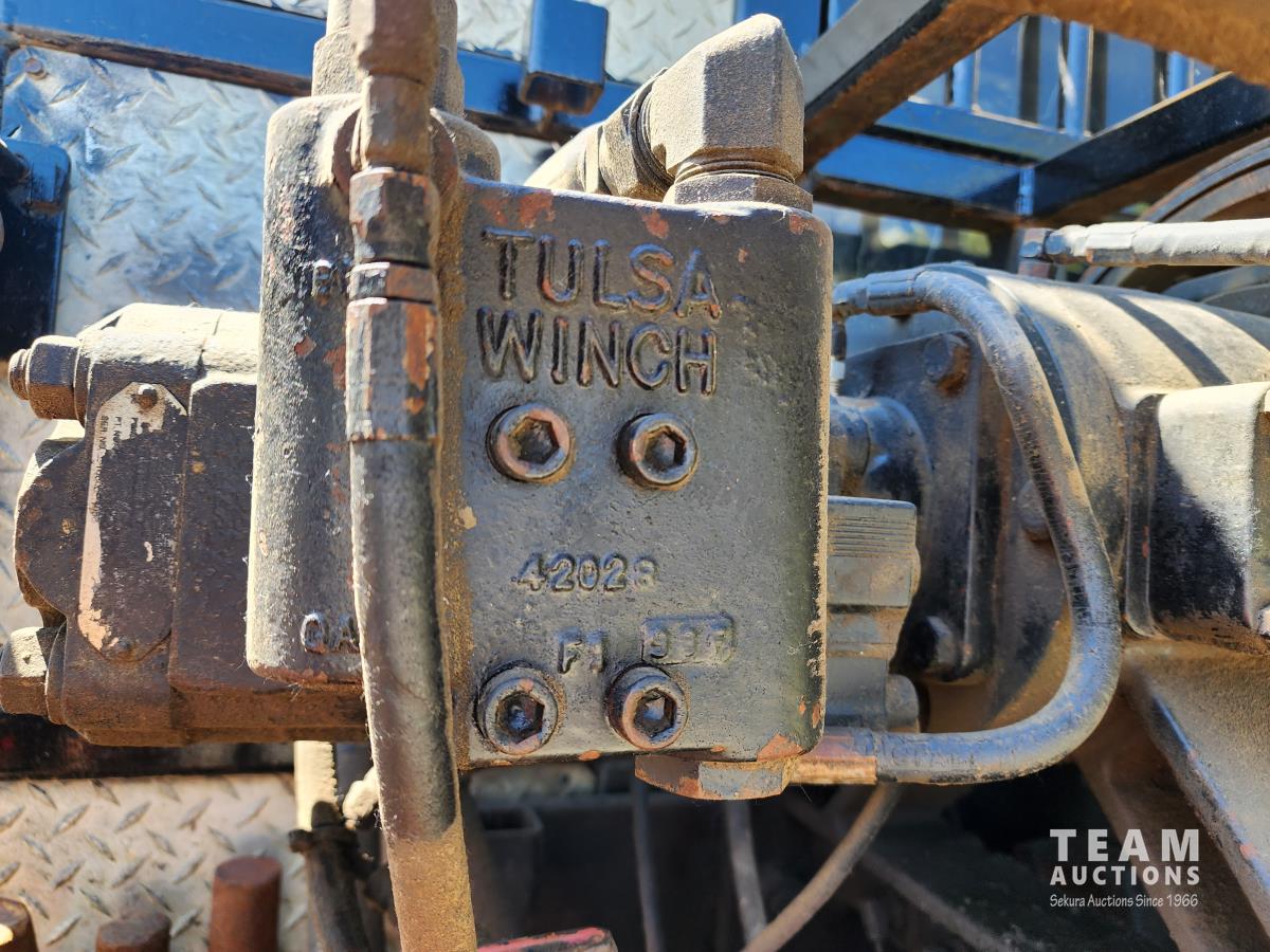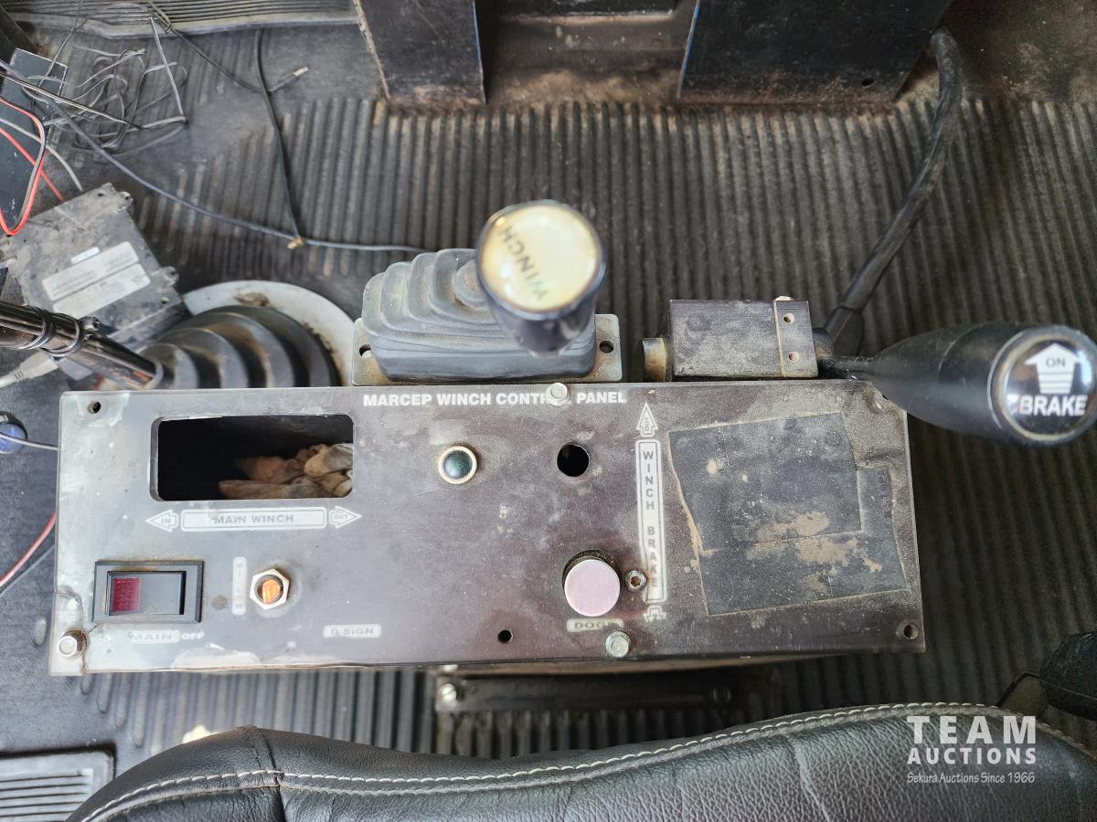 Caterpillar C15 ACERT 550 HP engine, Eaton Fuller 18 speed manual transmission, Webasto cab heater, flat top 42 inch sleeper, A/C, radio, aluminum tool boxes, beacons, chain holders, Roughneck 30 T hydraulic winch, air ride suspension, 14,600 lb front axle, 46,000 lb rear axles, 3 way diff locks, 246 inch WB, all aluminum wheels, 385/65R22.5 front tires, 11R24.5 rear tires