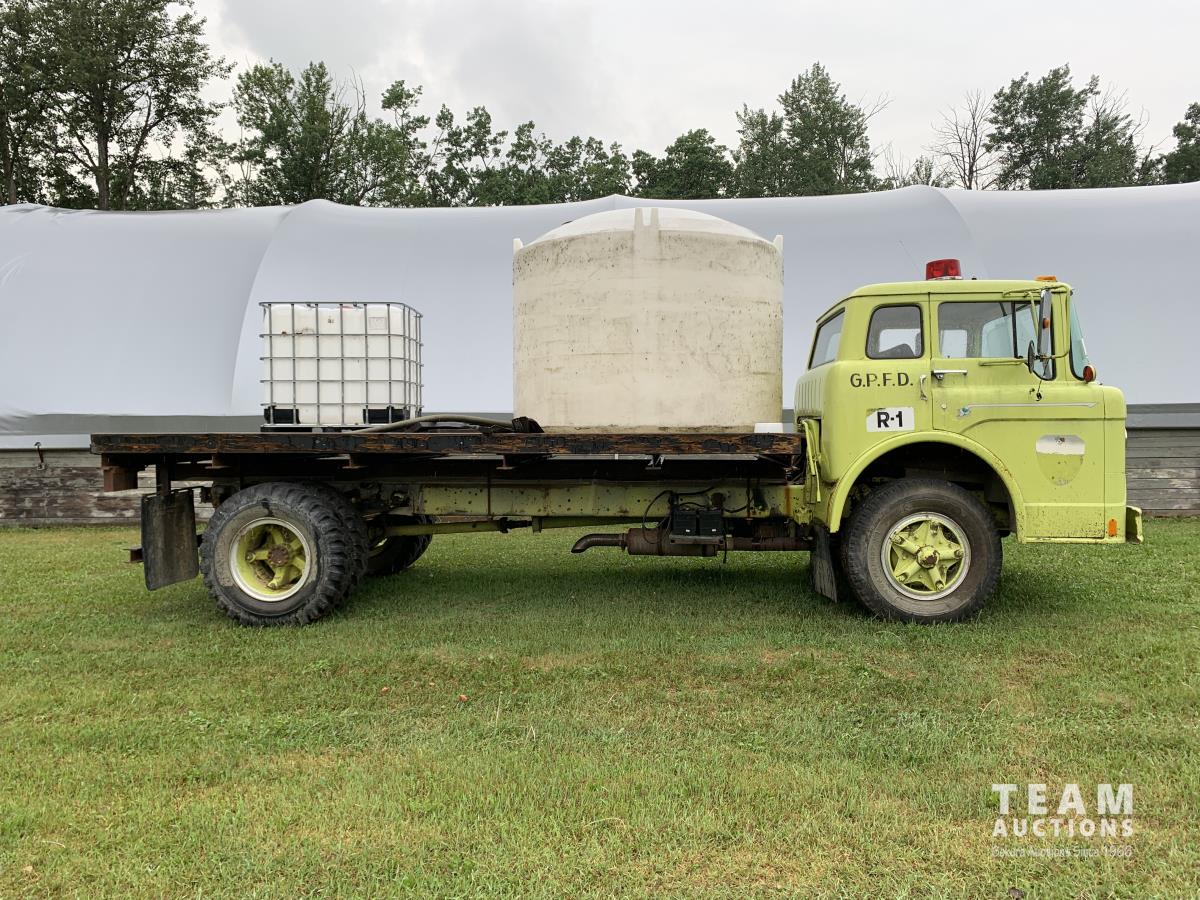 505 cu in gas engine, engine block heater, 5 speed manual transmission, 8 ft x 16 ft deck, beacons, Steel frame deck, 5000 liter tank, 1000 plastic square water tank, spring suspension, 9,000 lb front axle, 18,500 lb rear axles, 175 inch WB, 10.00-20 tires