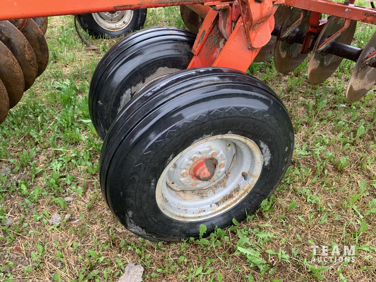 19.5 smooth discs, 9.5 inch front spacing, 7.5 inch rear spacing, 9.5L-15 tires