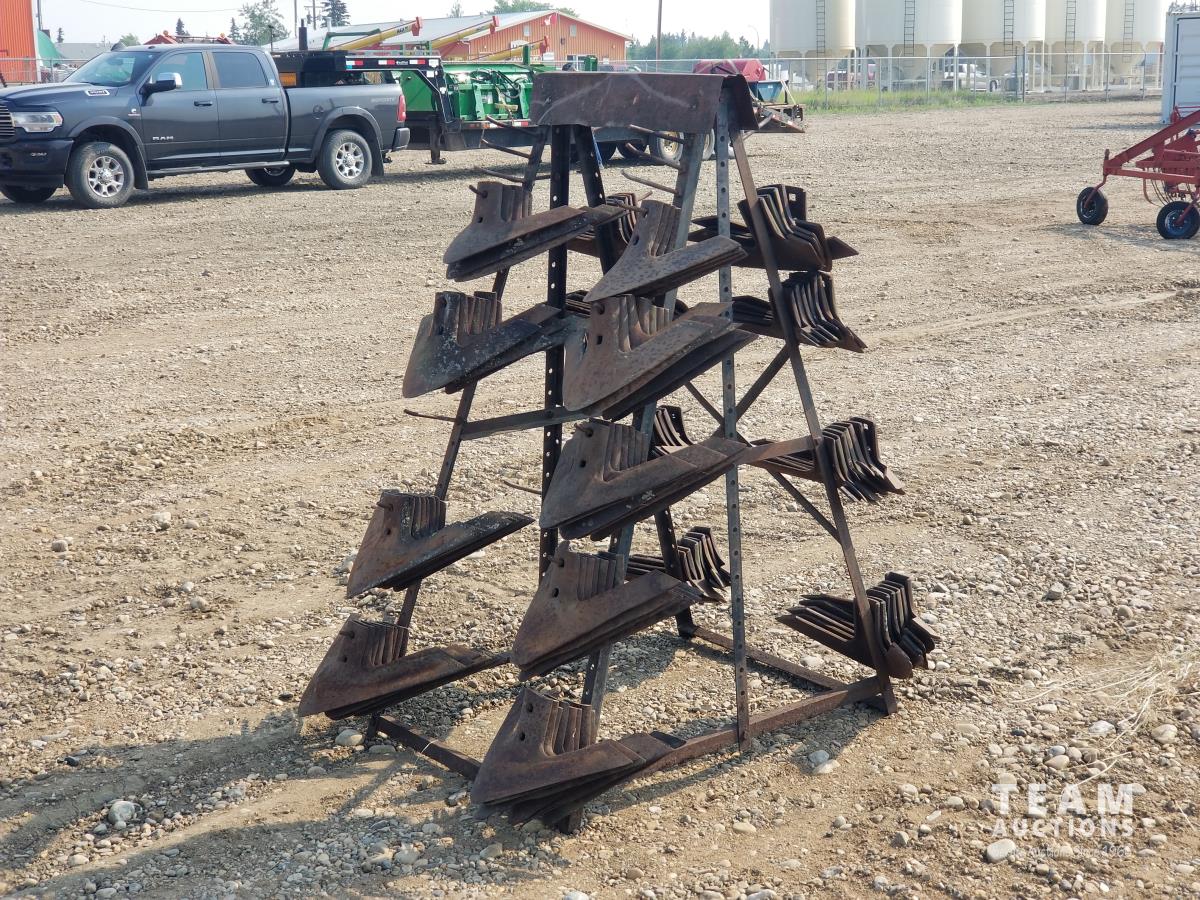 813 Assortment of Cultivator Sweeps On Steel Rack