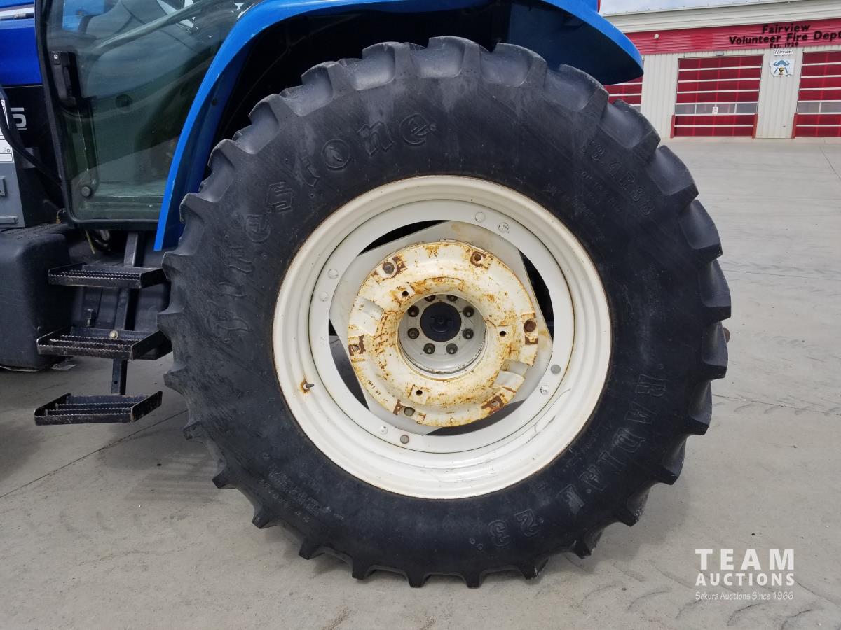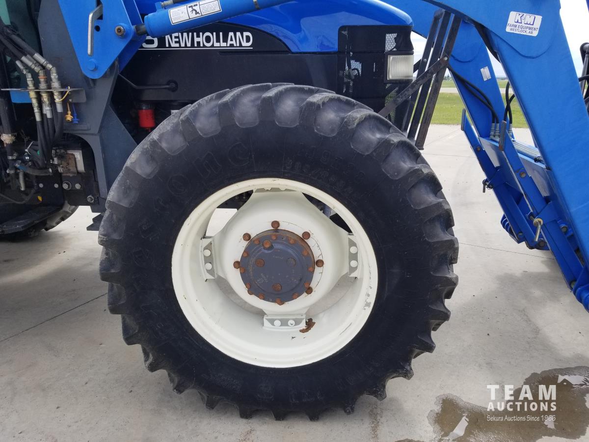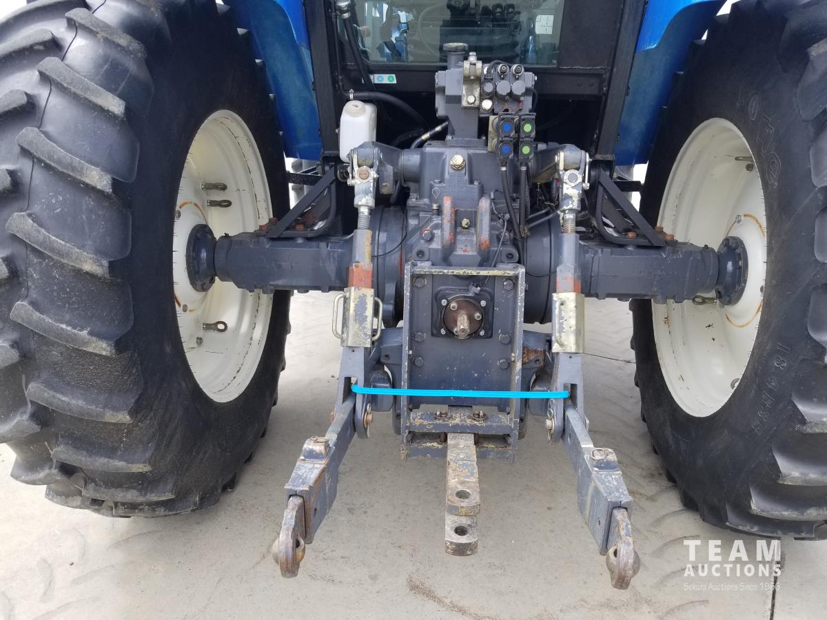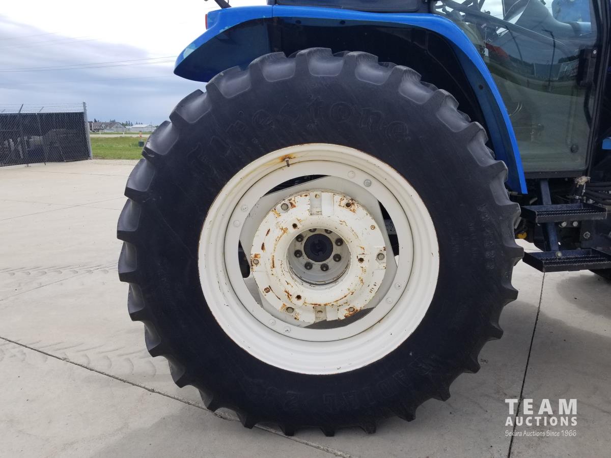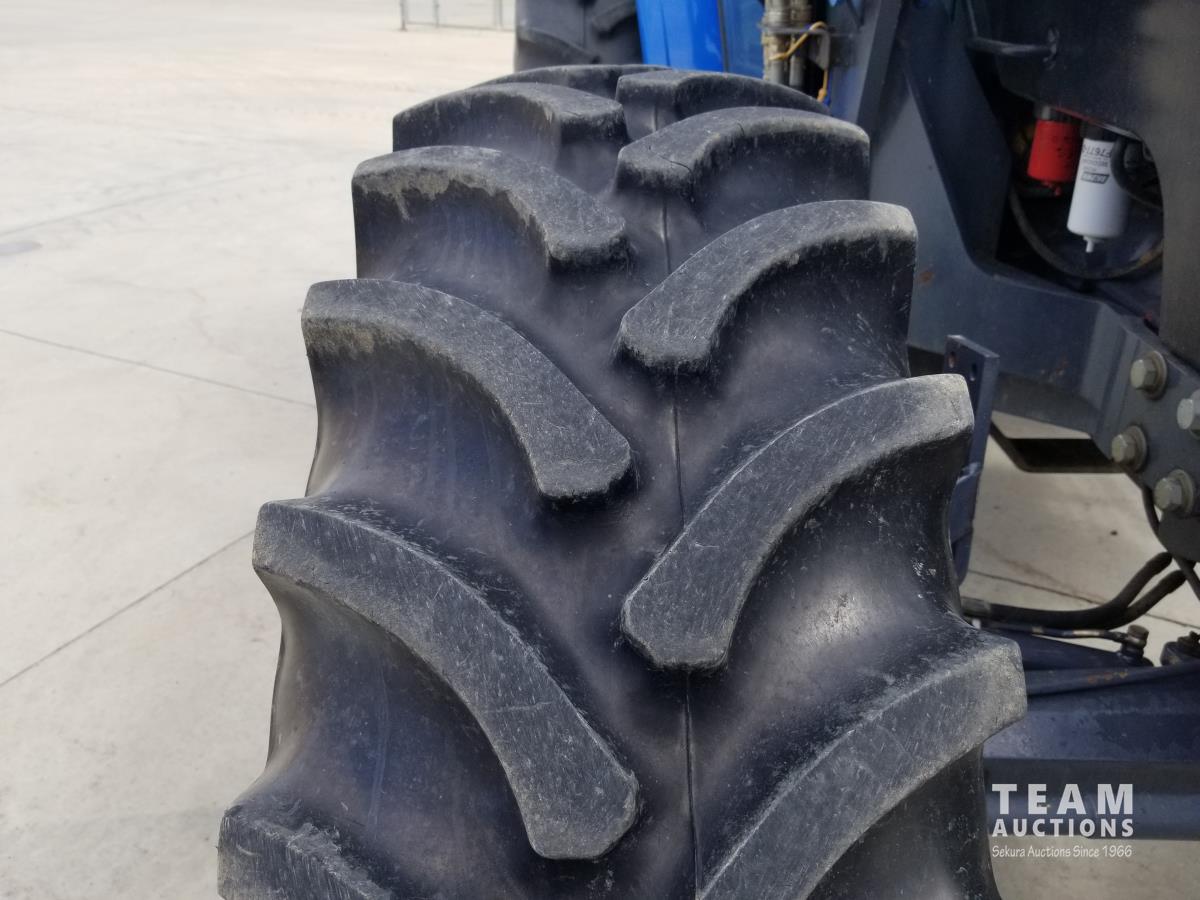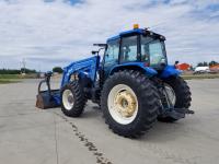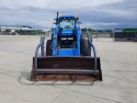 New Holland 72LA loader, 96 inch bucket, grapple, New Holland TM115 7.5 L 6 cylinder 115 HP, diesel engine, 92 PTO HP, 18 speed power shift transmission, 28 GPM hydraulic pump, Range Command, cab, left hand reverser, front and rear differential lock, joystick, A/C, upgraded stereo, 540/1000 PTO, 3 point hitch, 3 point hitch exterior control, 2 rear hydraulic outlets, rear wheel weights, 14.9R28 front tires, 18.4R38 rear tires, temp control switch needs replaced