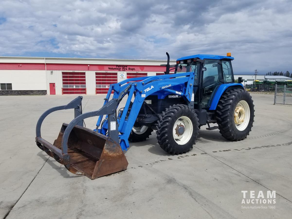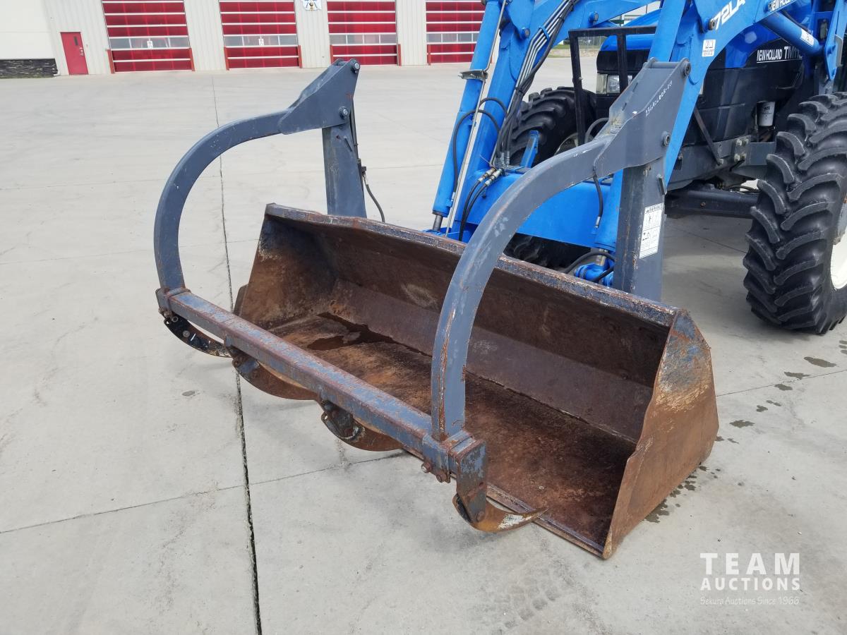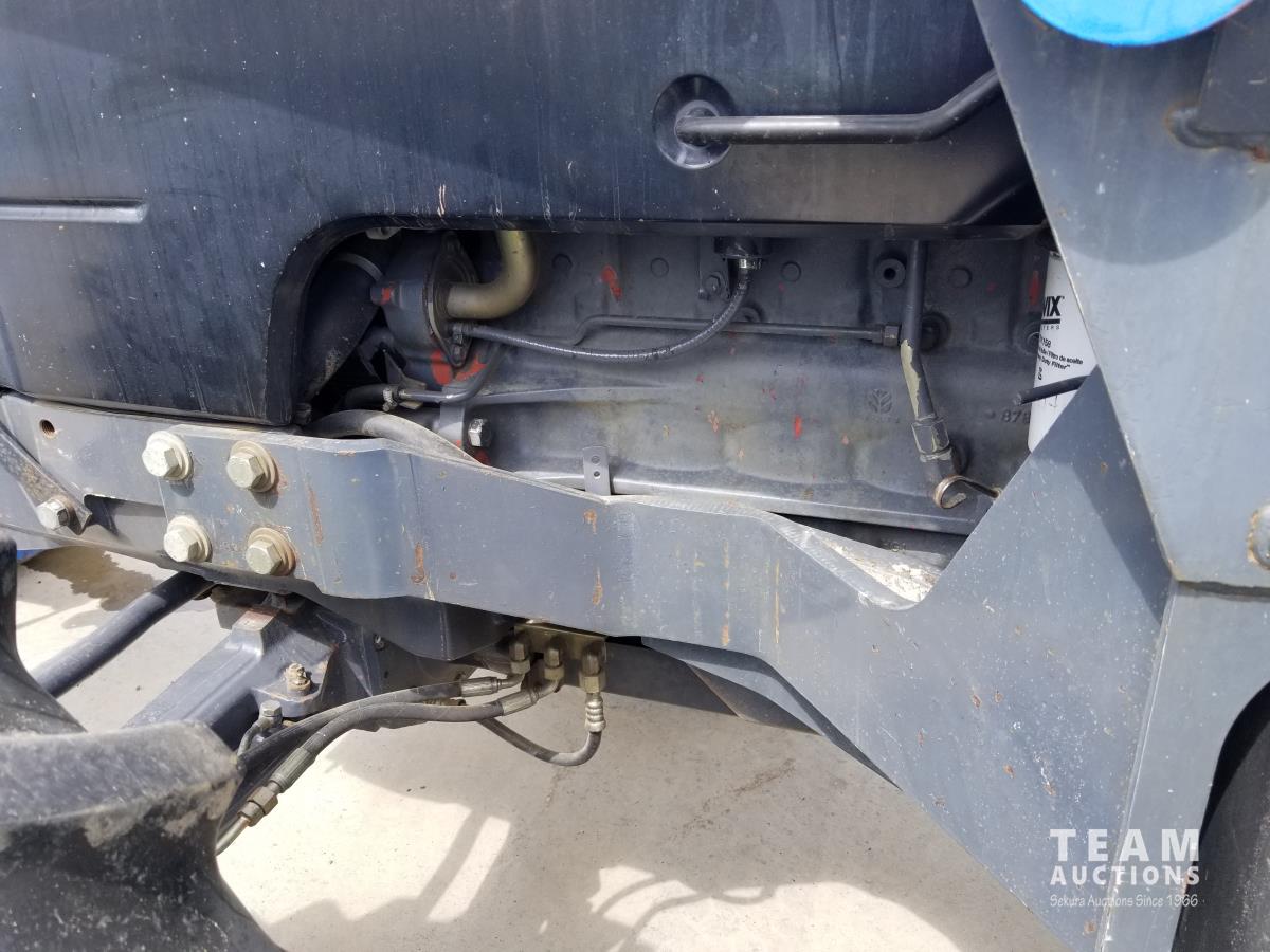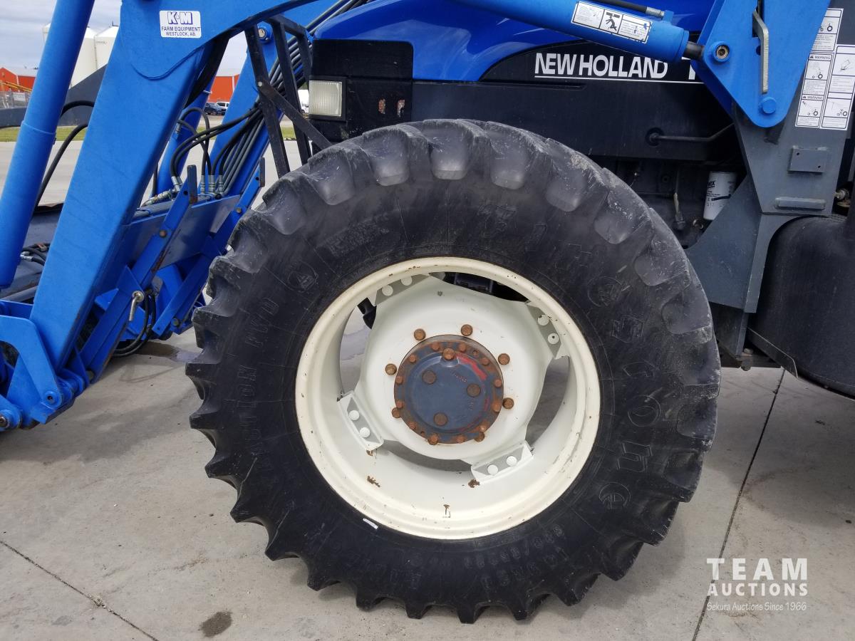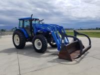 New Holland 72LA loader, 96 inch bucket, grapple, New Holland TM115 7.5 L 6 cylinder 115 HP, diesel engine, 92 PTO HP, 18 speed power shift transmission, 28 GPM hydraulic pump, Range Command, cab, left hand reverser, front and rear differential lock, joystick, A/C, upgraded stereo, 540/1000 PTO, 3 point hitch, 3 point hitch exterior control, 2 rear hydraulic outlets, rear wheel weights, 14.9R28 front tires, 18.4R38 rear tires, temp control switch needs replaced