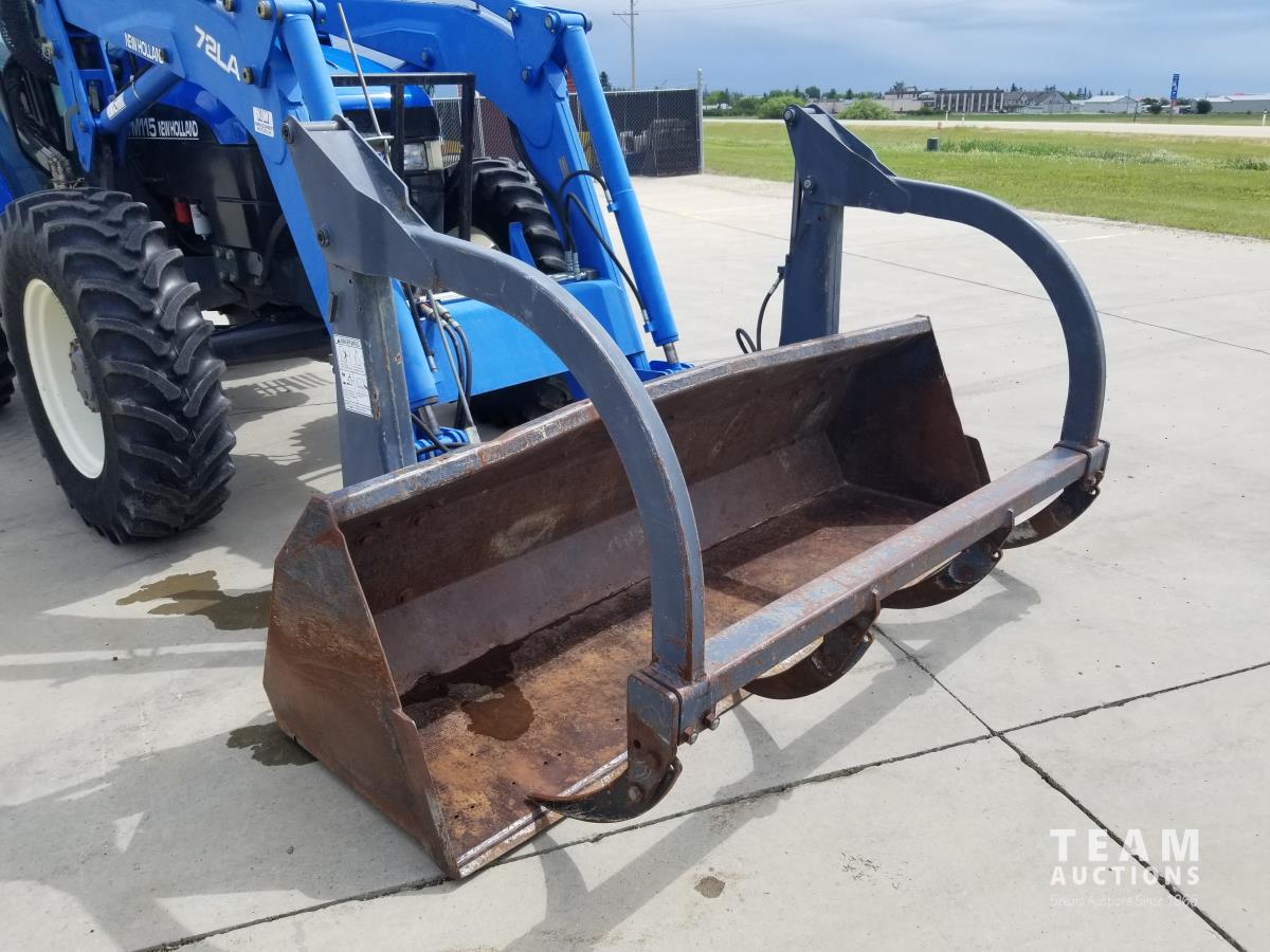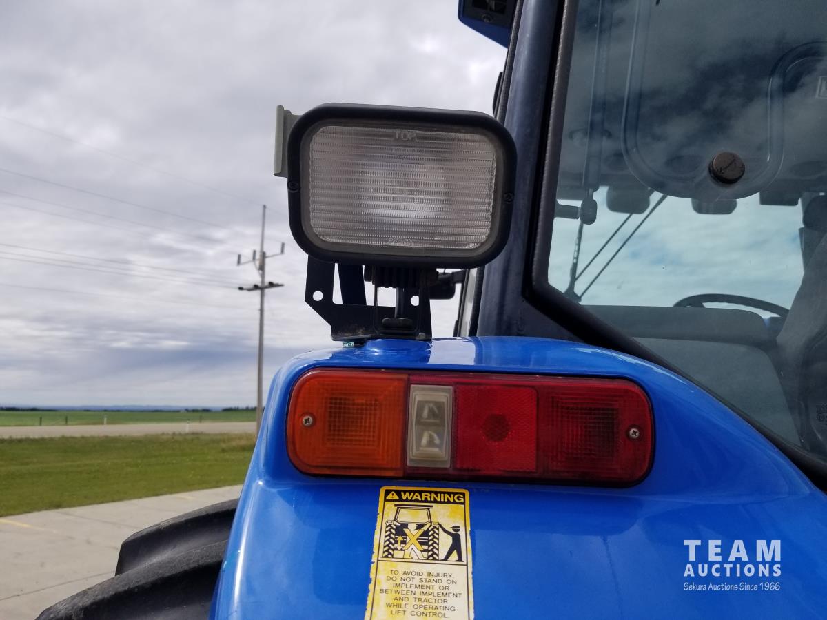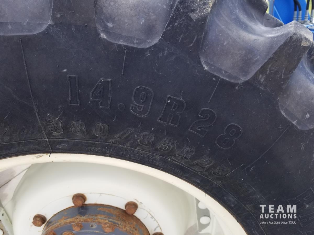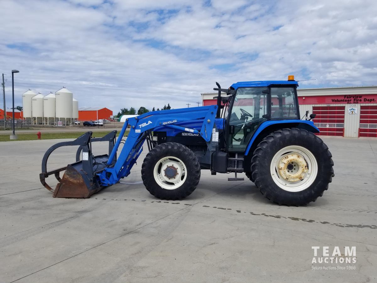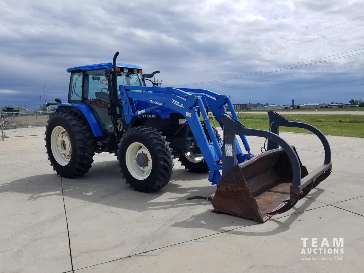 New Holland 72LA loader, 96 inch bucket, grapple, New Holland TM115 7.5 L 6 cylinder 115 HP, diesel engine, 92 PTO HP, 18 speed power shift transmission, 28 GPM hydraulic pump, Range Command, cab, left hand reverser, front and rear differential lock, joystick, A/C, upgraded stereo, 540/1000 PTO, 3 point hitch, 3 point hitch exterior control, 2 rear hydraulic outlets, rear wheel weights, 14.9R28 front tires, 18.4R38 rear tires, temp control switch needs replaced