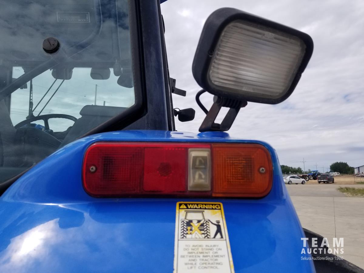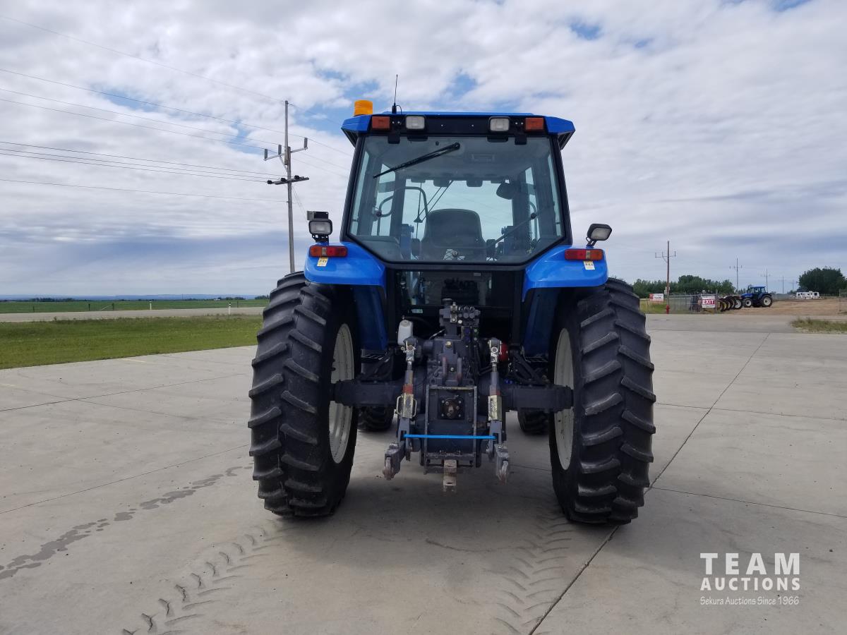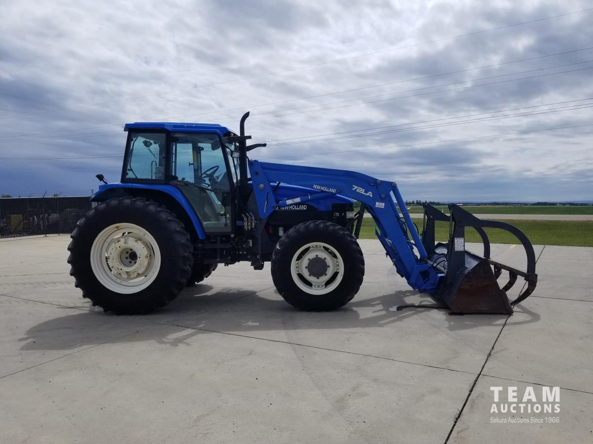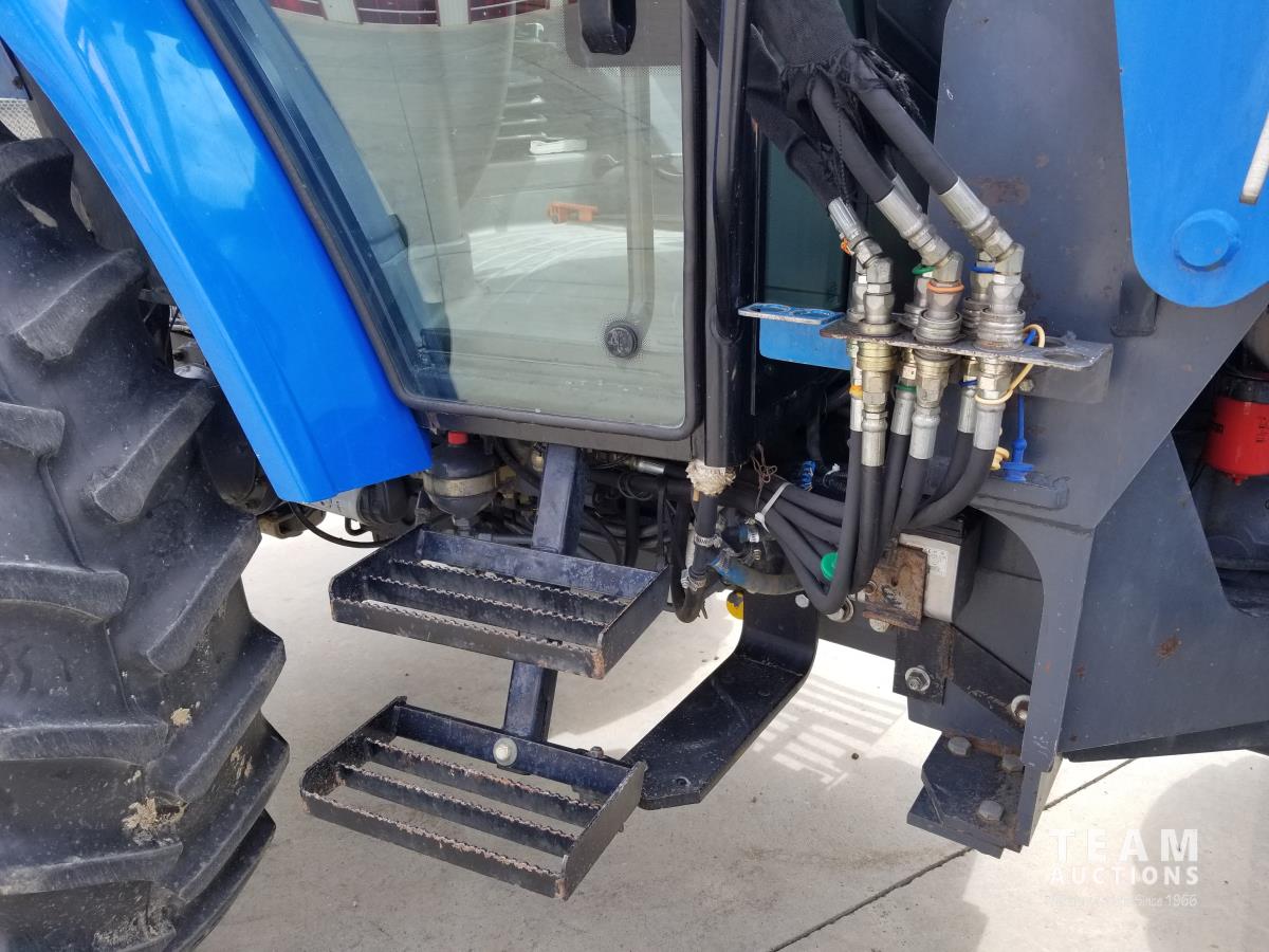 New Holland 72LA loader, 96 inch bucket, grapple, New Holland TM115 7.5 L 6 cylinder 115 HP, diesel engine, 92 PTO HP, 18 speed power shift transmission, 28 GPM hydraulic pump, Range Command, cab, left hand reverser, front and rear differential lock, joystick, A/C, upgraded stereo, 540/1000 PTO, 3 point hitch, 3 point hitch exterior control, 2 rear hydraulic outlets, rear wheel weights, 14.9R28 front tires, 18.4R38 rear tires, temp control switch needs replaced