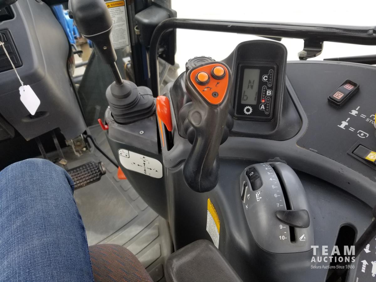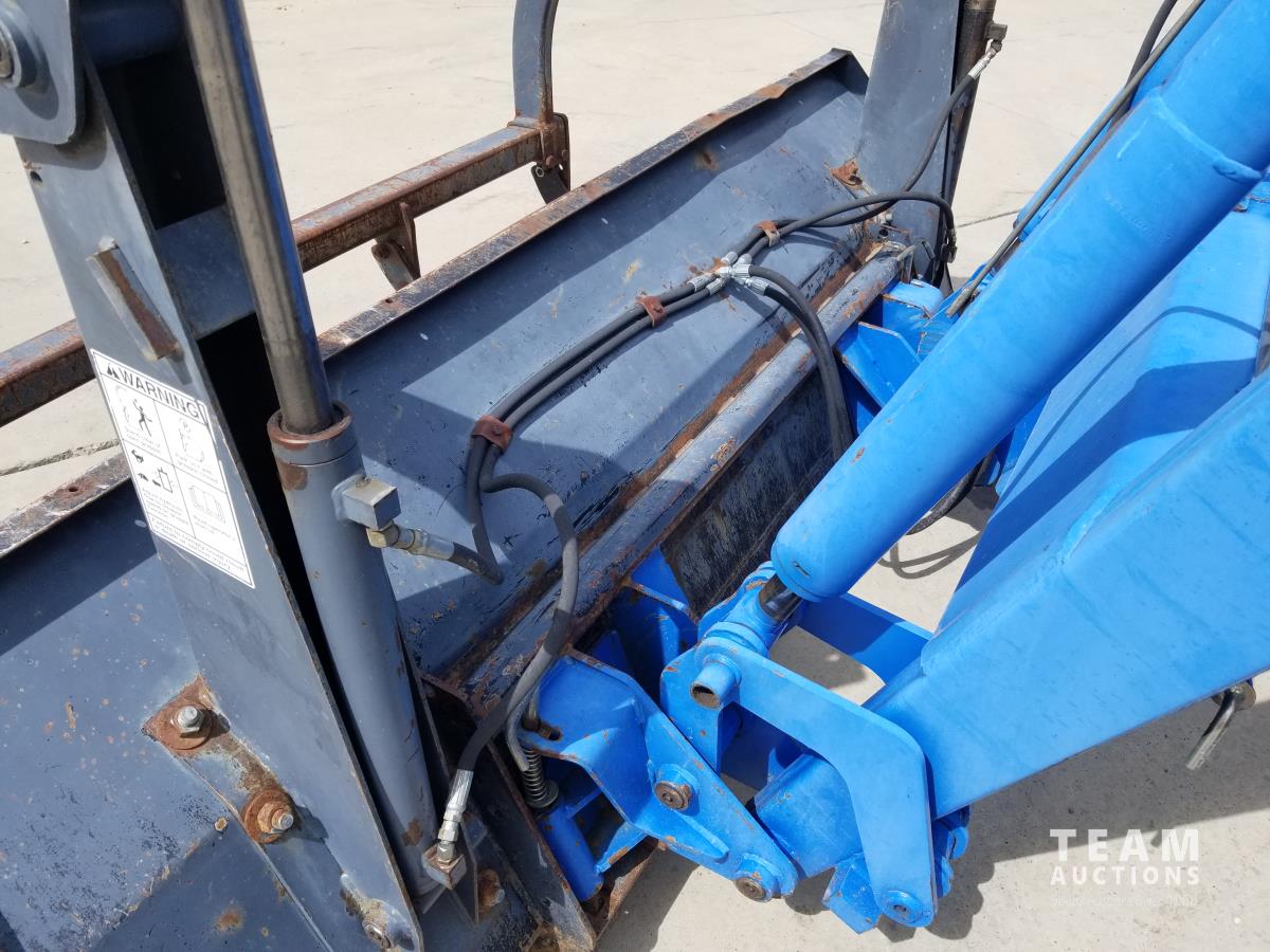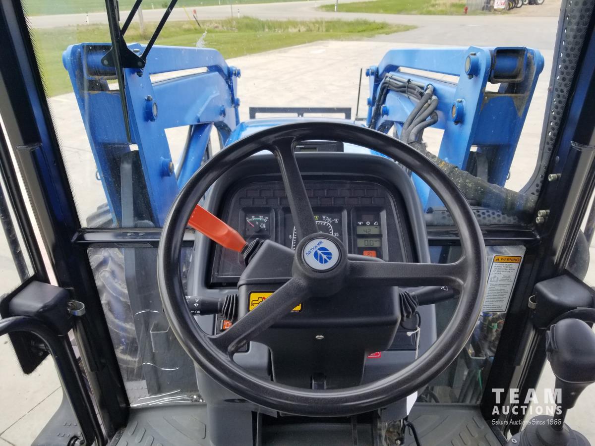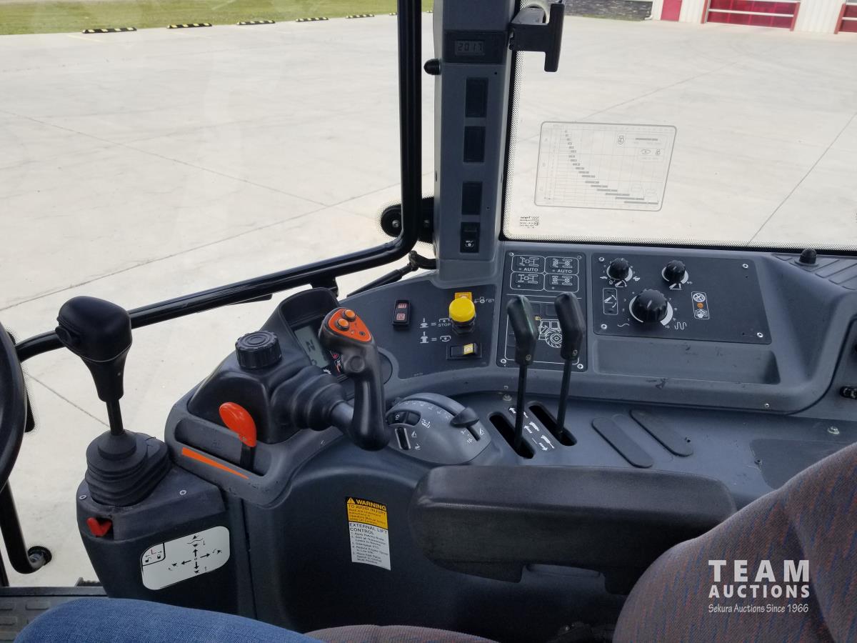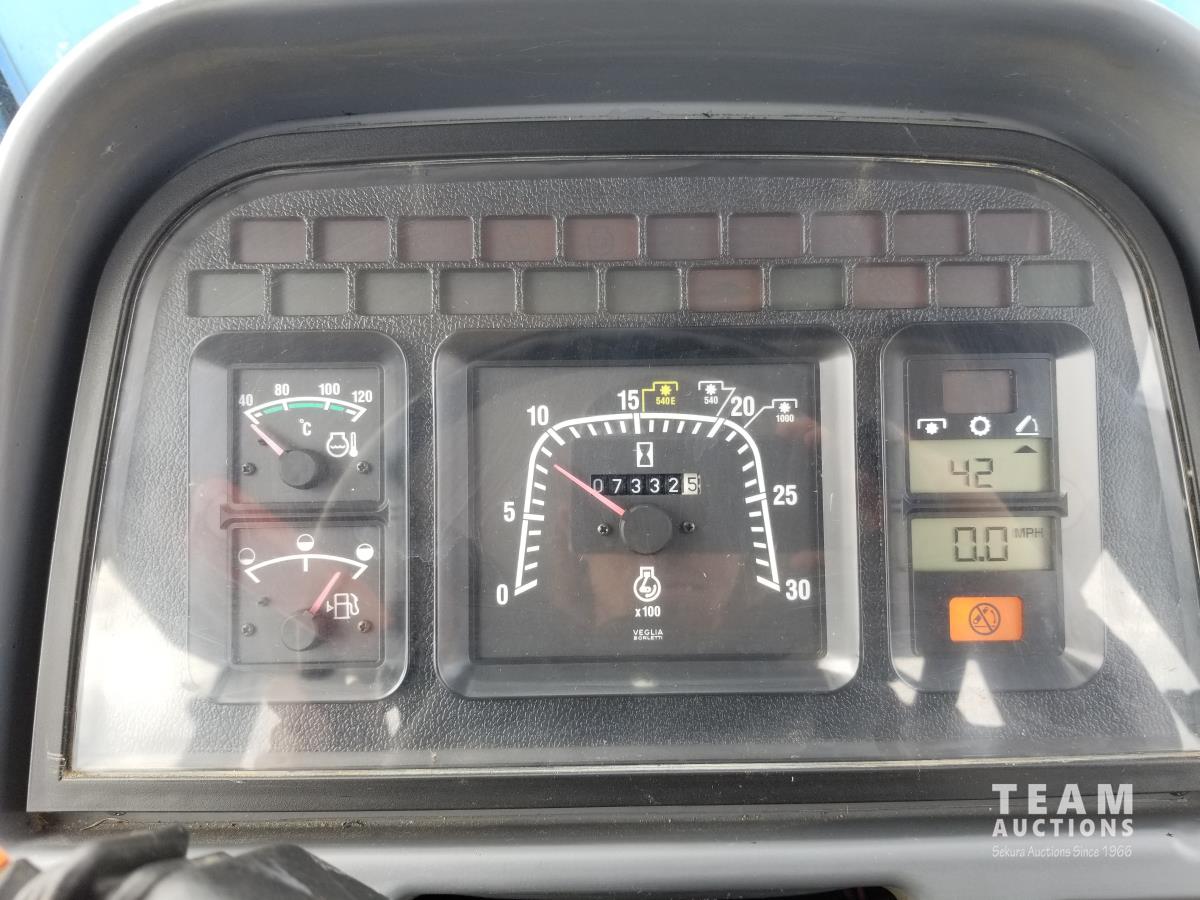 New Holland 72LA loader, 96 inch bucket, grapple, New Holland TM115 7.5 L 6 cylinder 115 HP, diesel engine, 92 PTO HP, 18 speed power shift transmission, 28 GPM hydraulic pump, Range Command, cab, left hand reverser, front and rear differential lock, joystick, A/C, upgraded stereo, 540/1000 PTO, 3 point hitch, 3 point hitch exterior control, 2 rear hydraulic outlets, rear wheel weights, 14.9R28 front tires, 18.4R38 rear tires, temp control switch needs replaced