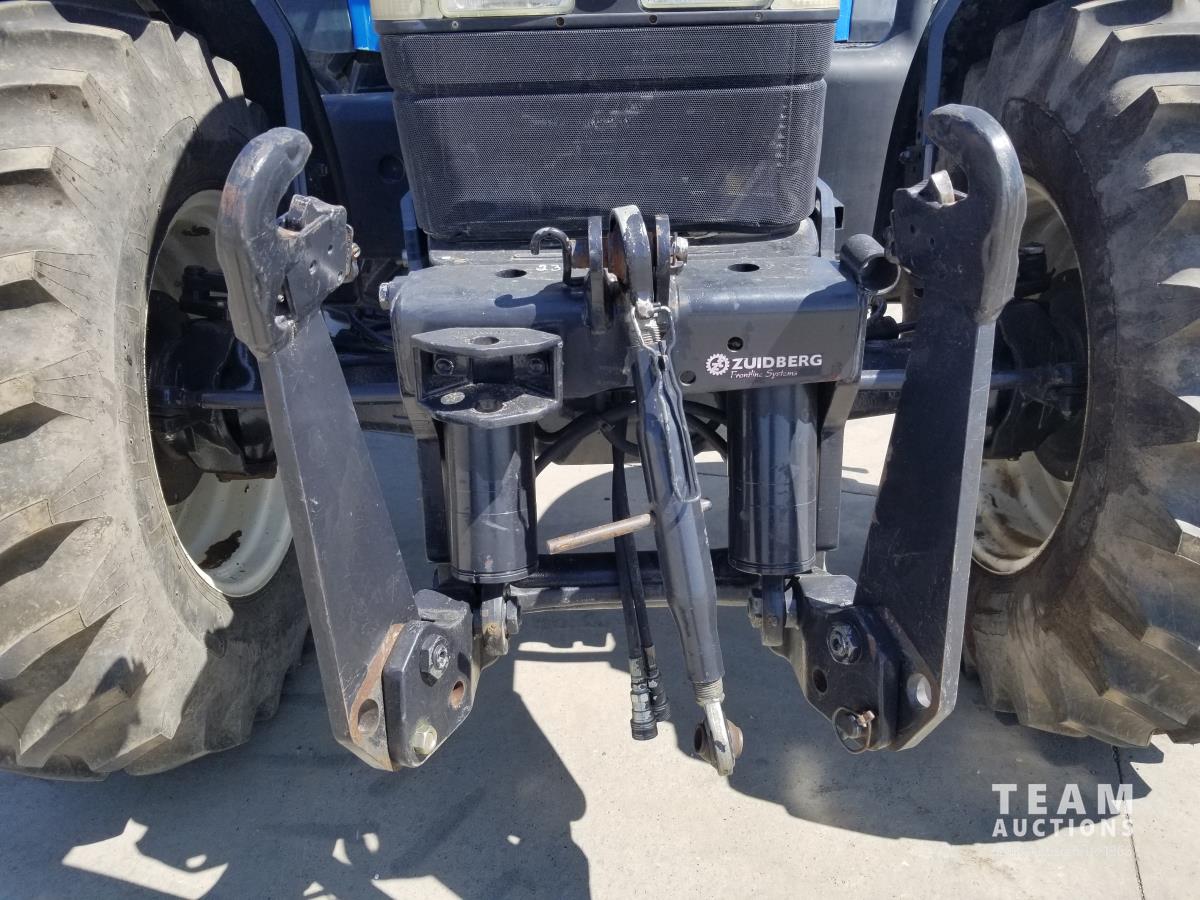 New Holland 7.5 L 6 cylinder 150 HP, diesel engine, 120 PTO HP, 18 speed power shift transmission, 28 GPM hydraulic pump, cab, left hand reverser, front and rear differential lock, A/C, radio, air ride seat, buddy seat, 1 front hydraulic outlets, front Q/A 3 point hitch, 540/1000 PTO, Q/A 3 point hitch, 3 rear hydraulic outlets, 1 rear auxillary hydraulic outlets, 16.9-30 front tires, 620/70R42 rear tires, New Front Tires