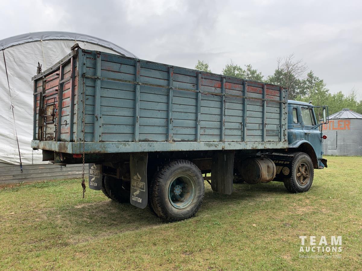 5 speed manual transmission, 5 speed 2 , 16 ft box, 4 ft high wood box, spring suspension, 149 inch WB, 10.00-20 tires