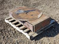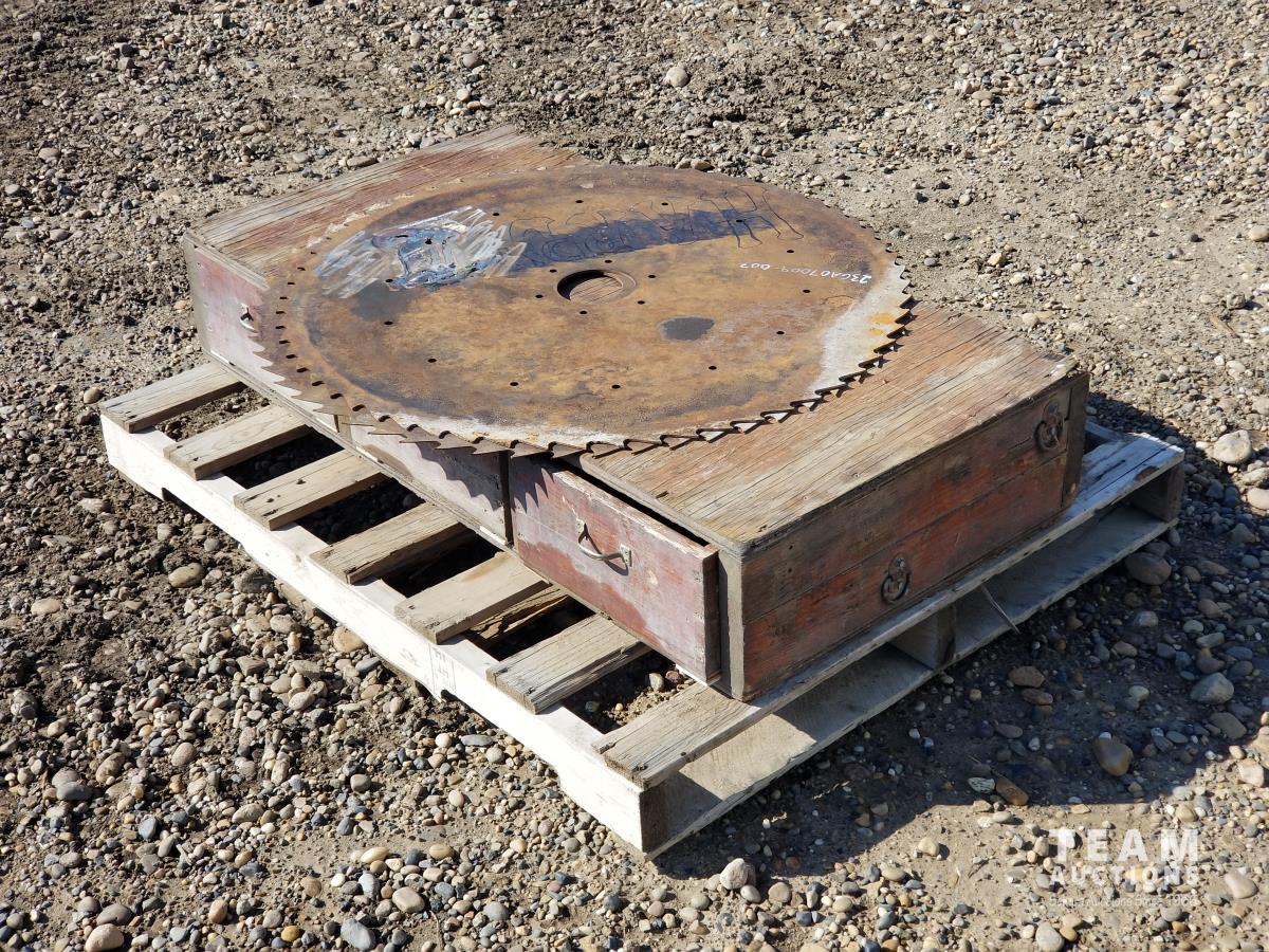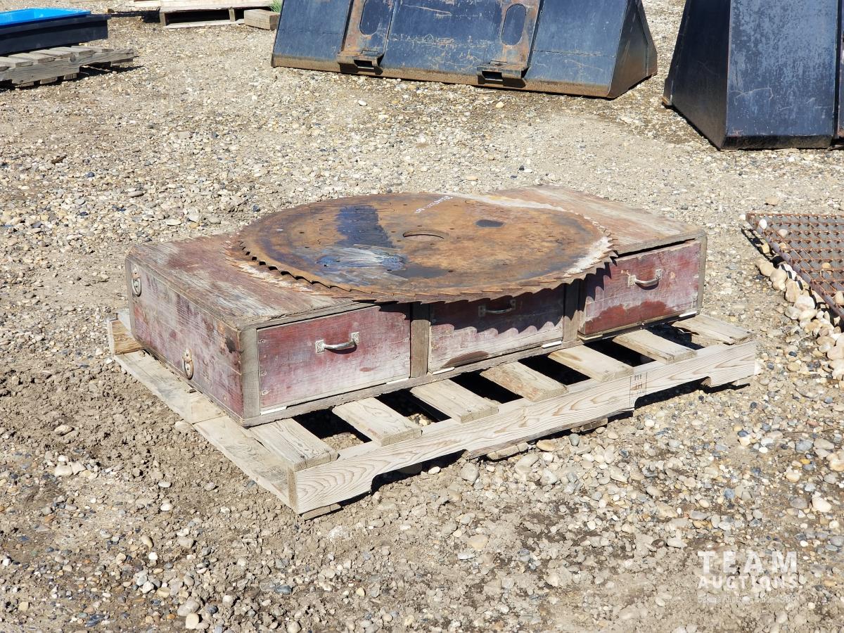 890 Wooden Truck Toolbox and (2) 34 Inch Saw Blades