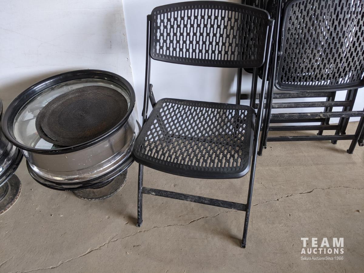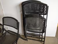 1415 (2) Wheel End Tables with Glass Tops and (4) Folding Chairs