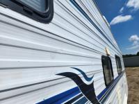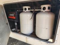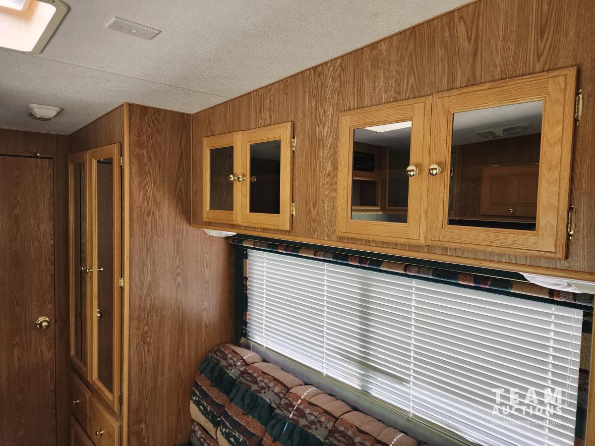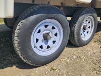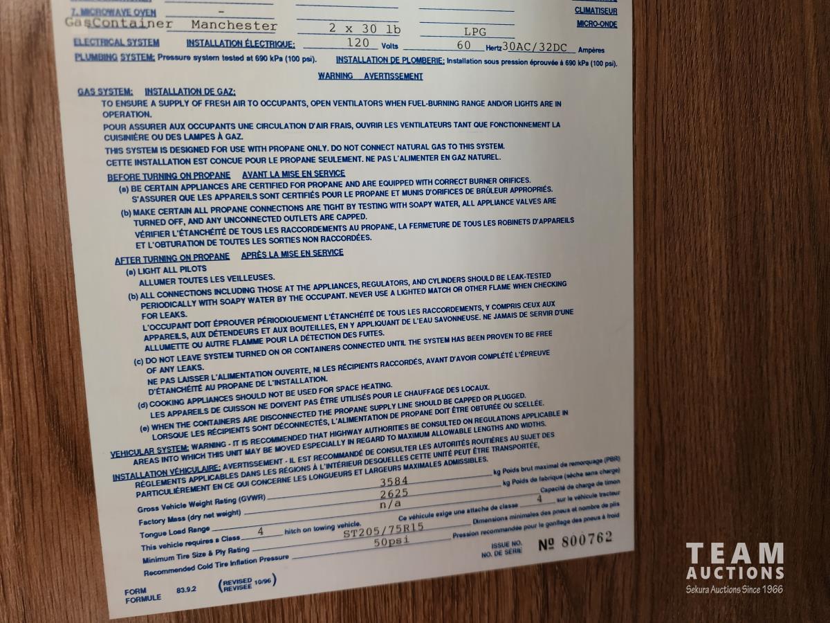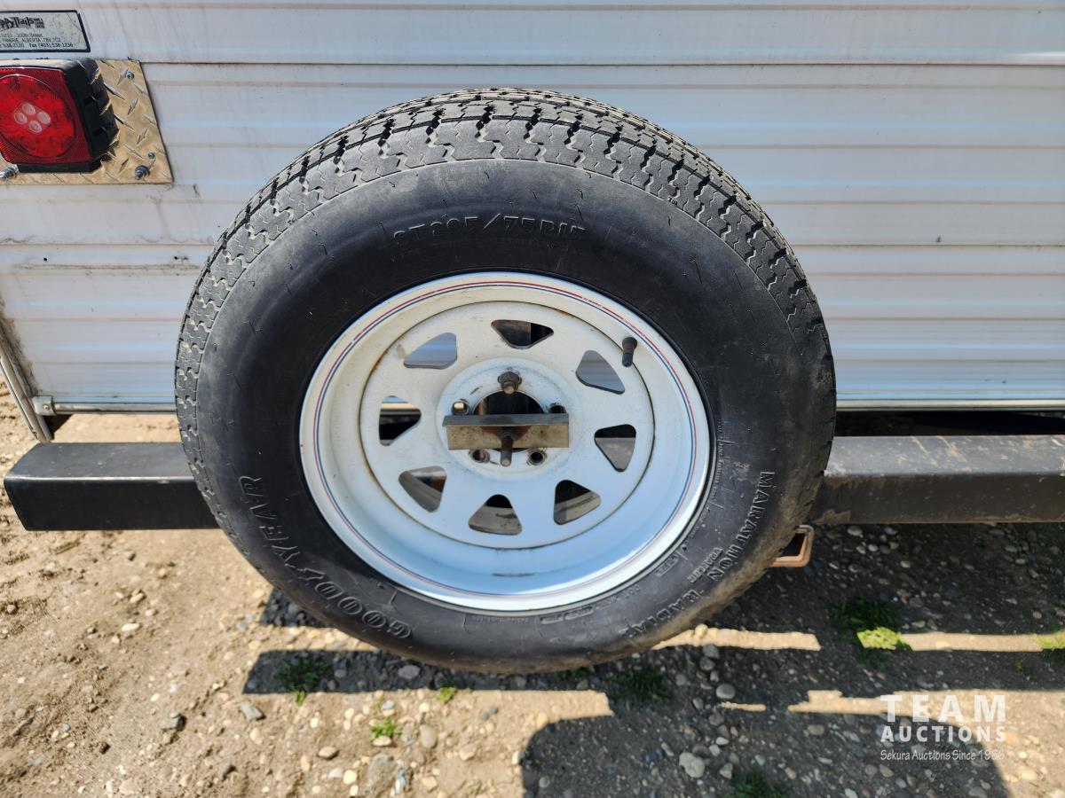 Fridge, stove, dinette, pull out couch, rear bunks, bathroom, front queen bed, outdoor shower, spare tire, 205/75D15 tires