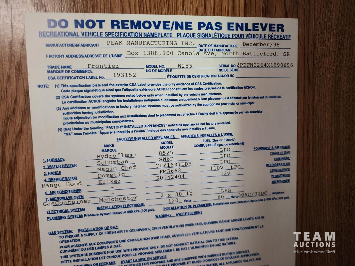 2381 1999 Peak Manufacturing Frontier W255 25 Ft T/A Fifth Wheel Travel Trailer