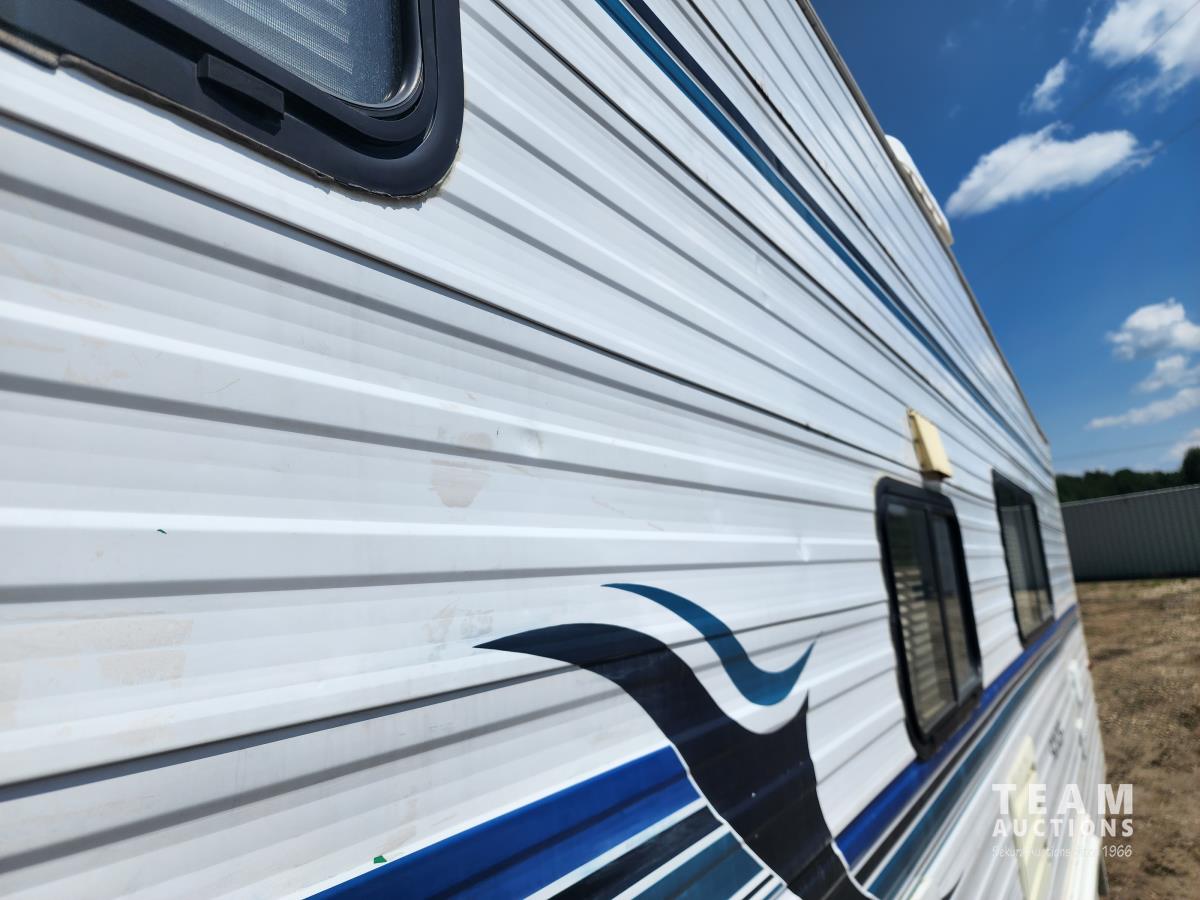 See last pictures for damages. Has hail damage, water damage in bathroom as seen in picture. Leak has been fixed as per consignor. Insides of tires are worn.