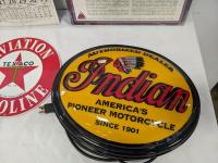 1046 (5) Tin Signs and (2) Calendars and Light Up Indian Sign