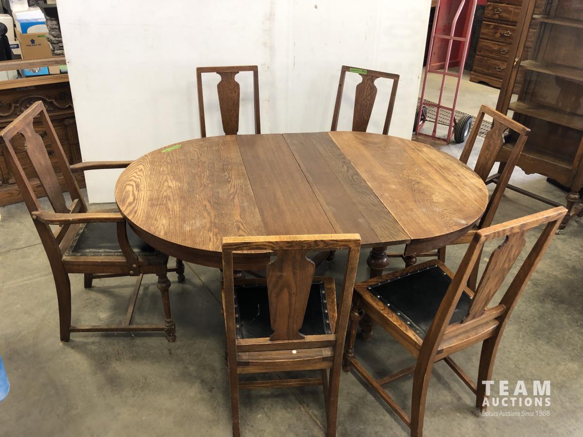 1190 Antique Table and (6) Chair Set with (2) Leaves