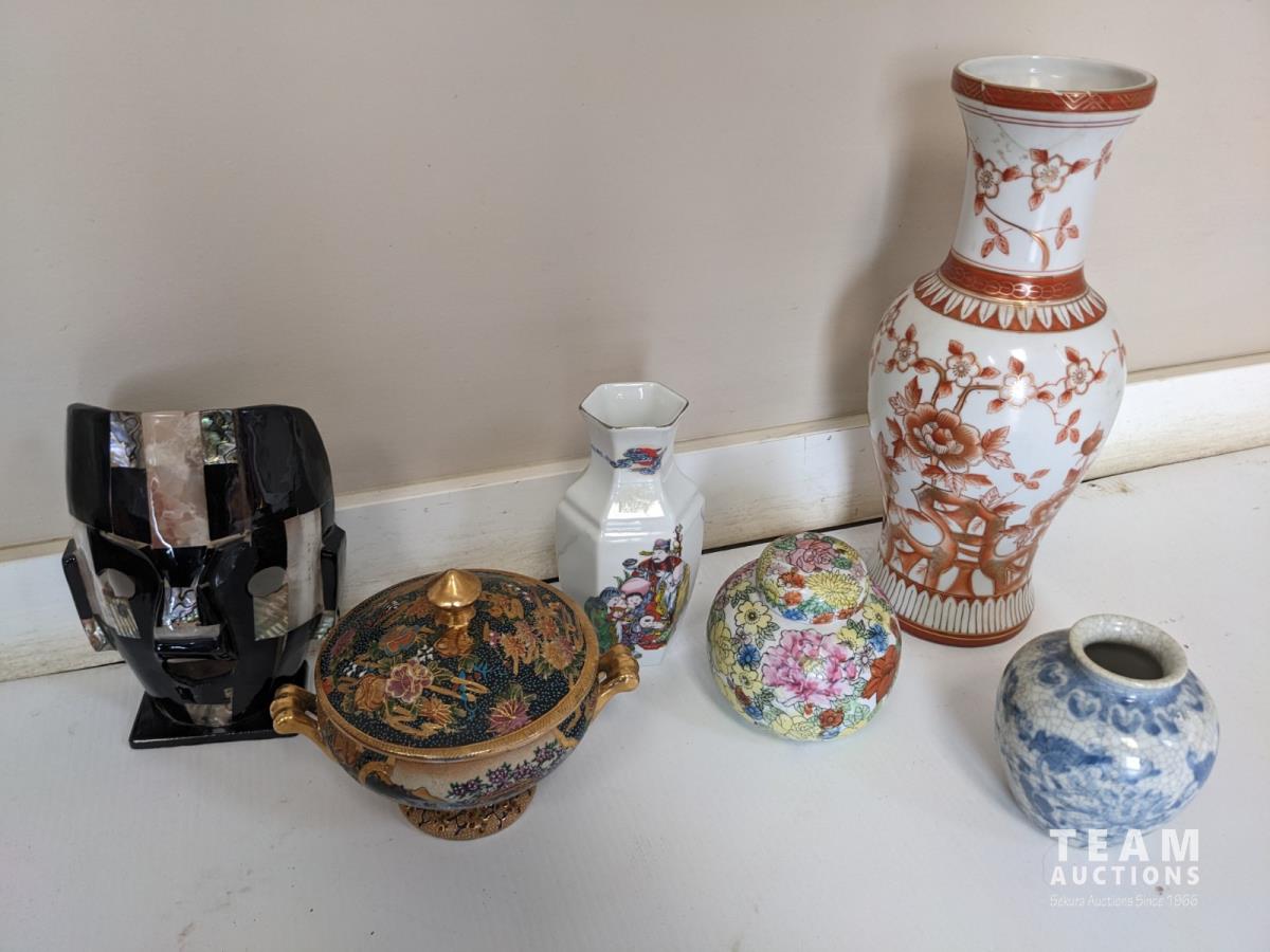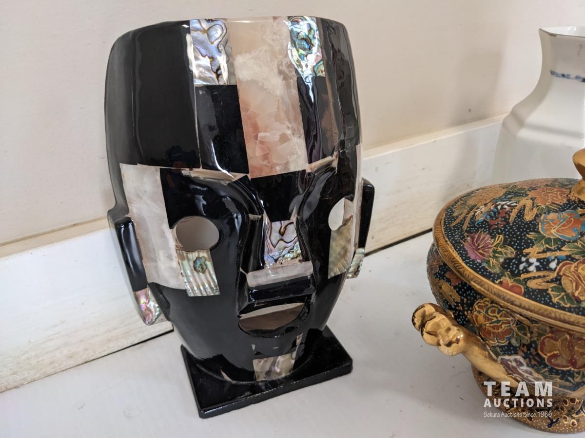 2203 Collection of Vintage Chinese Vases and Death Mask
