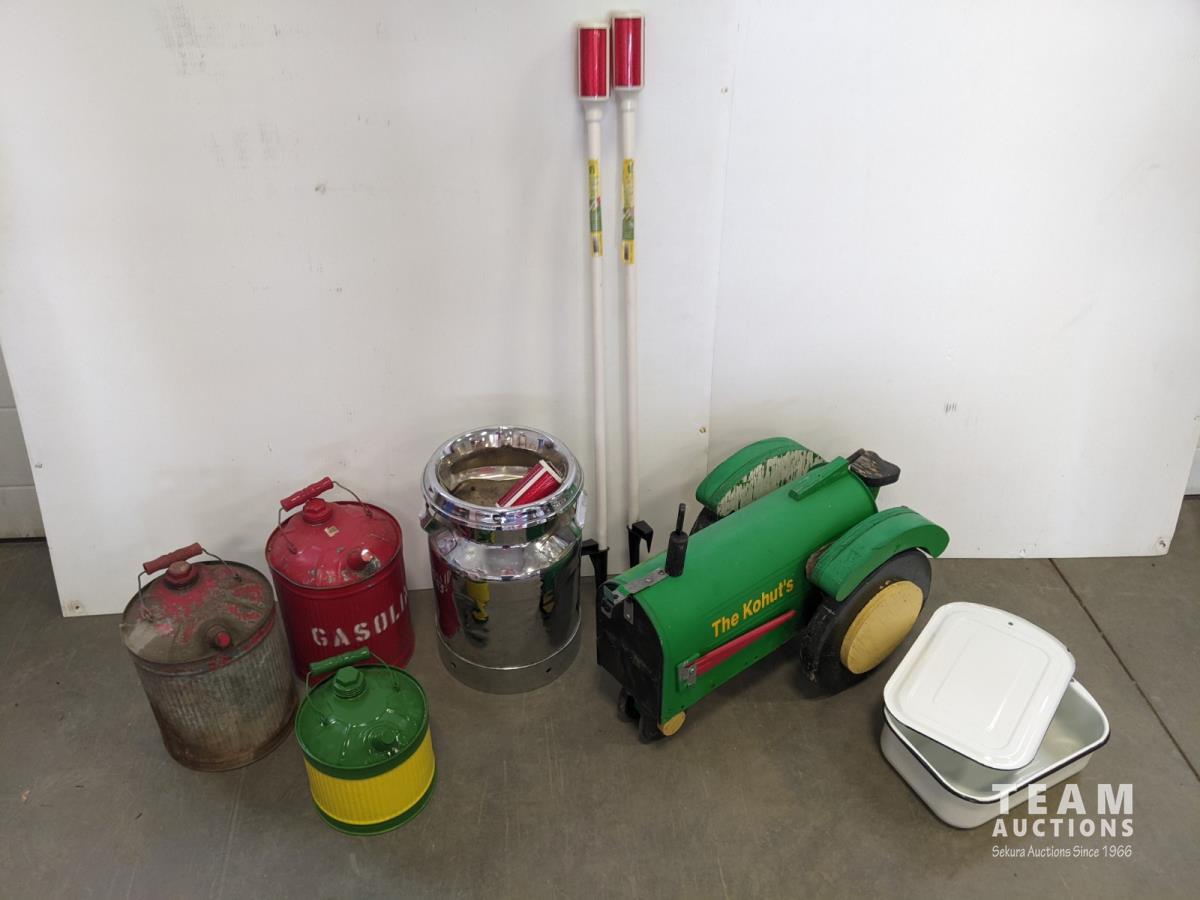 1073 Creamer, Tractor Mailbox and (3) Antique Fuel Cans