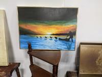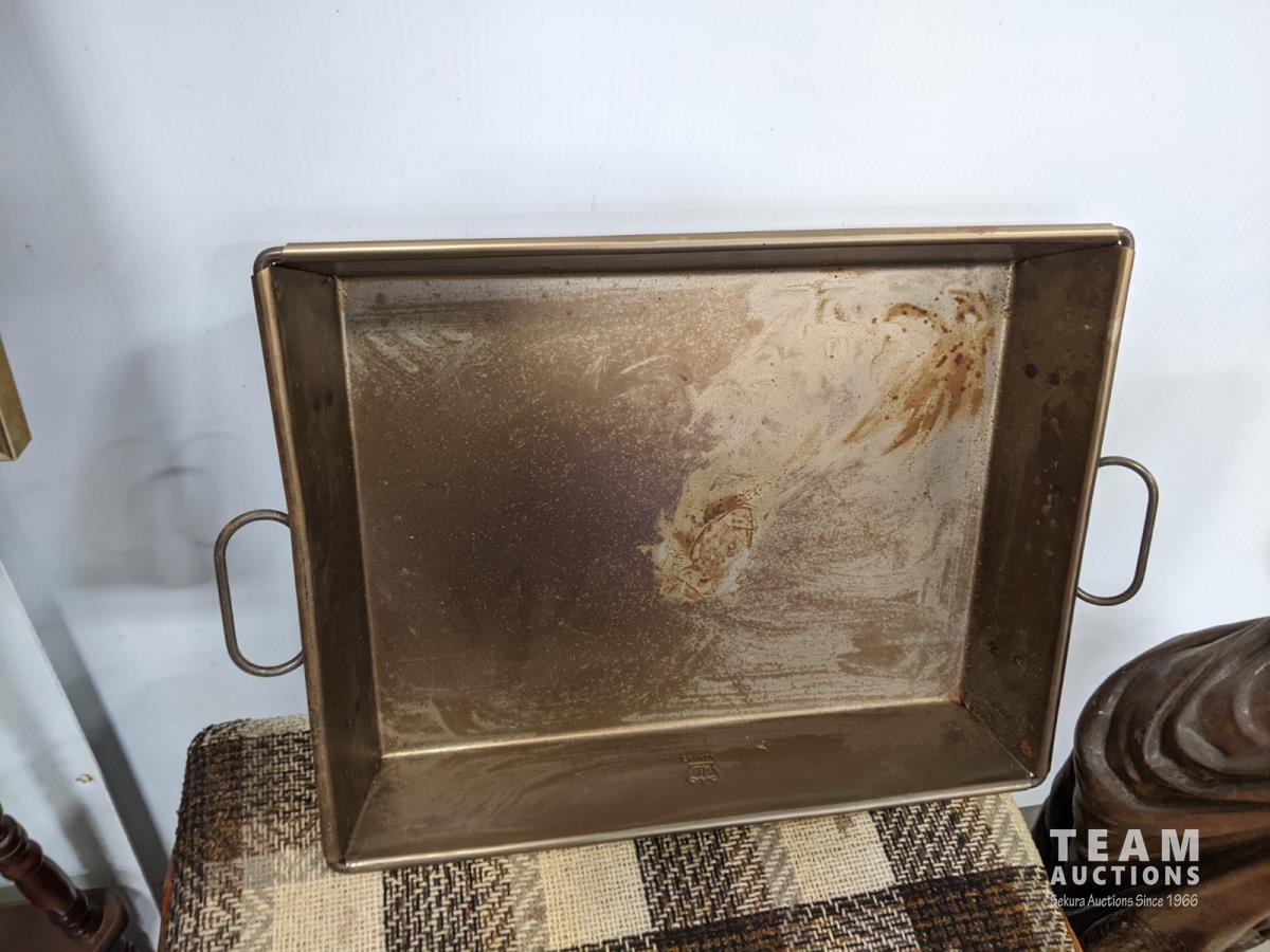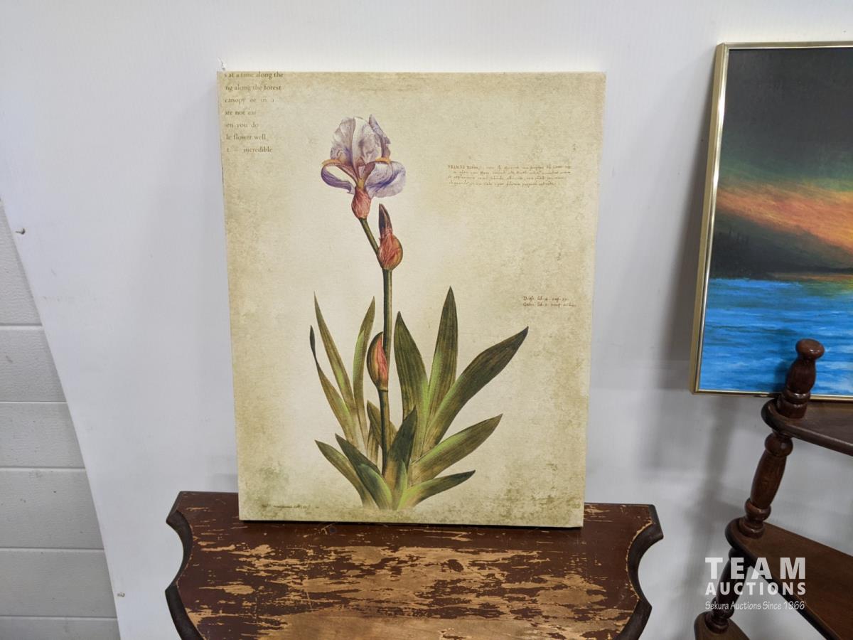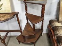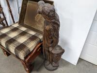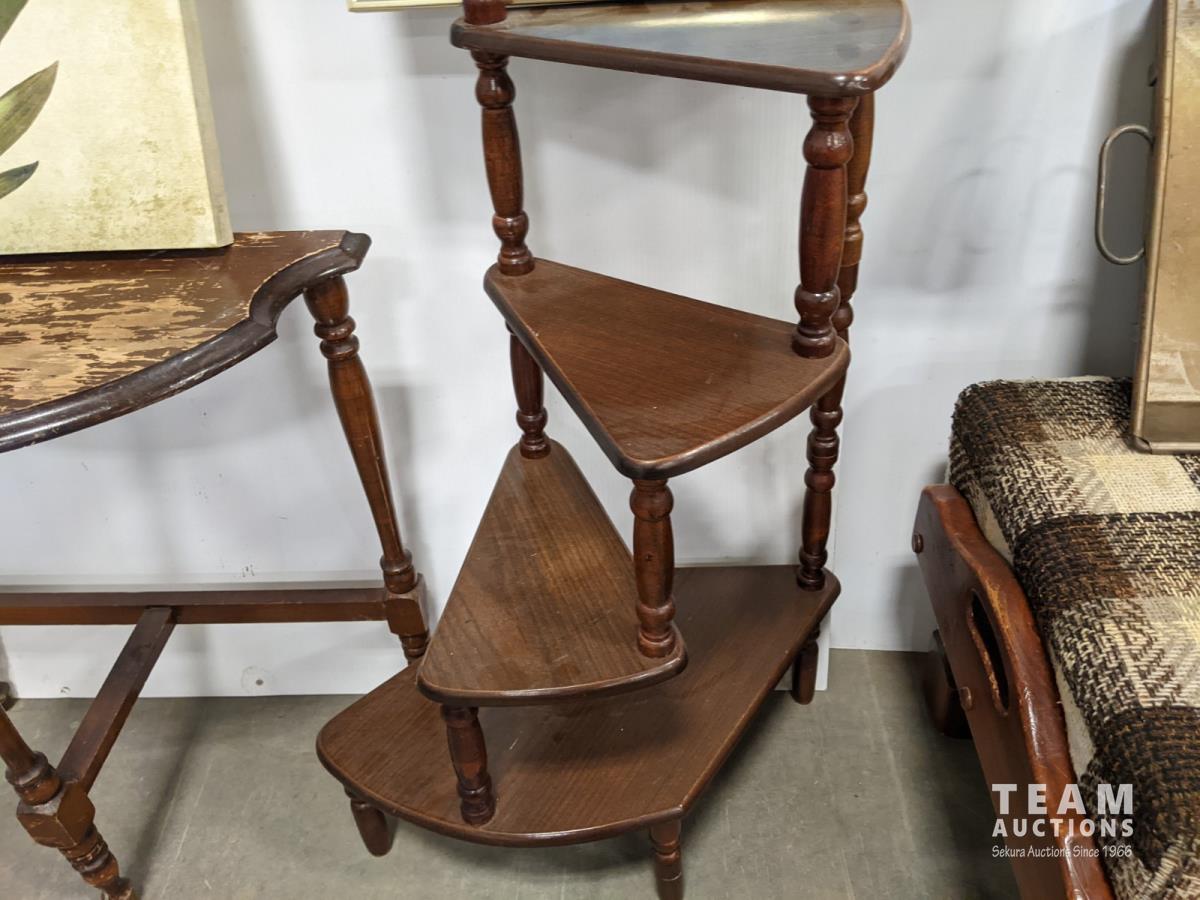 1144 Hallway Table, Side Table, (2) Pictures, Foot Stool, Large Pan and Yard Statue