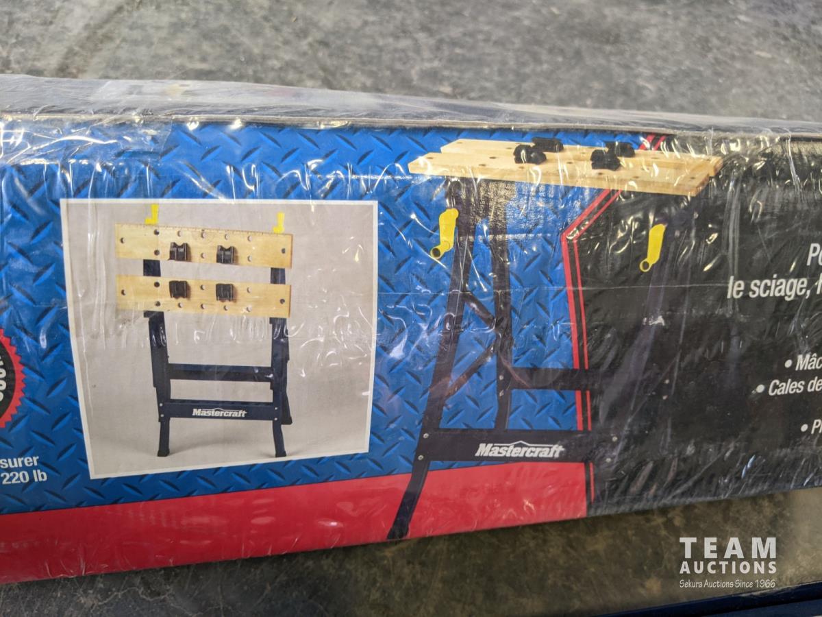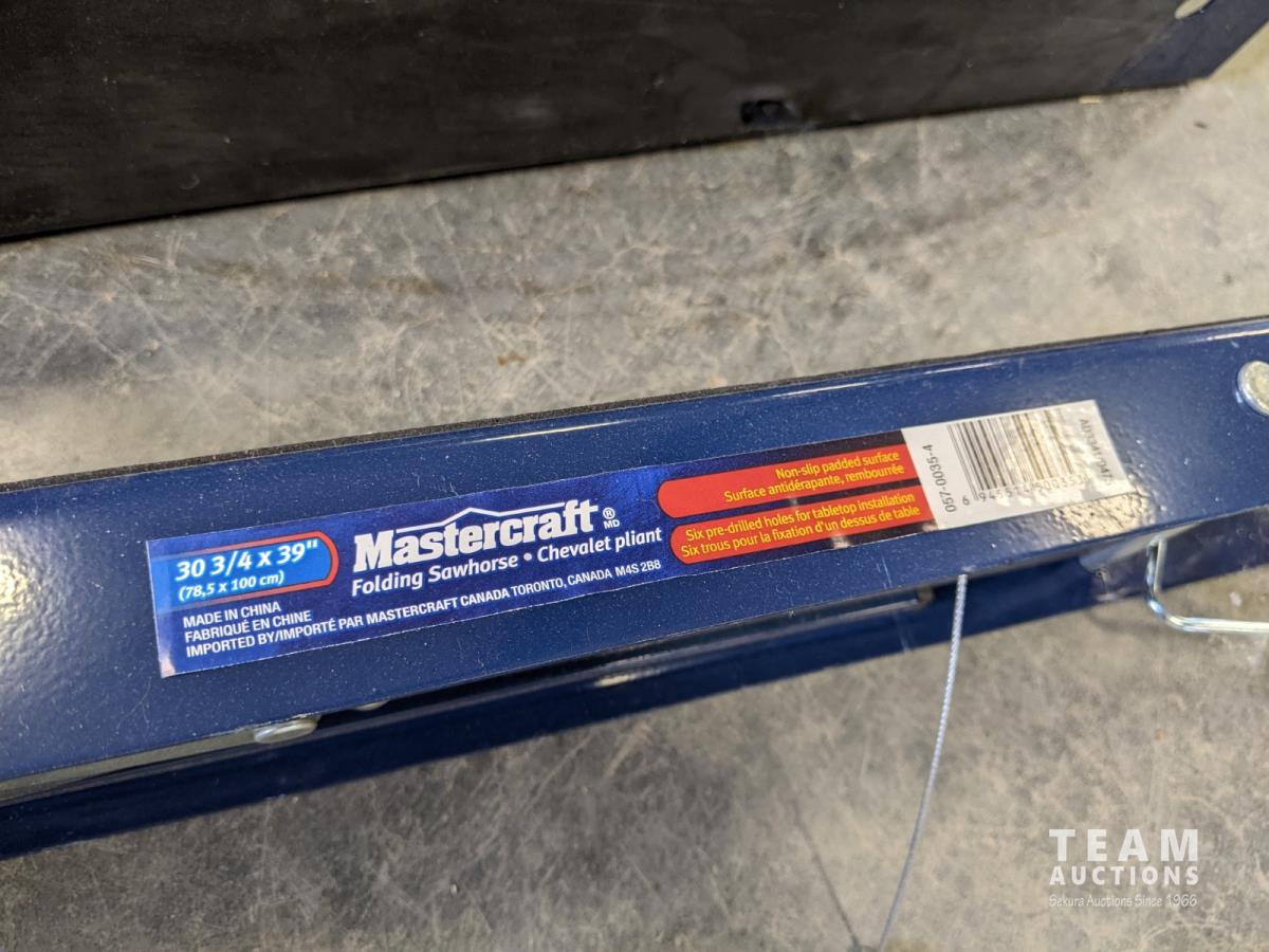 1003 Mastercraft Folding Work Bench (Unused) and (2) Mastercraft Folding Sawhorse